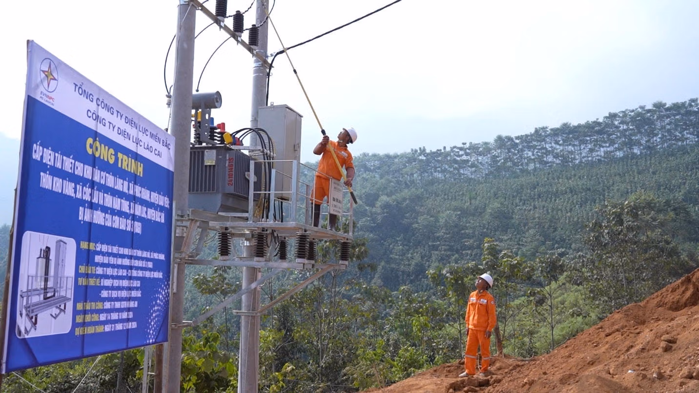 Về đích sớm hơn 45 ngày so với kế hoạch, Công ty Điện lực Lào Cai (PC Lào Cai) vừa chính thức đóng điện công trình cấp điện tái thiết cho khu dân cư thôn Làng Nủ, xã Phúc Khánh, huyện Bảo Yên của tỉnh Lào Cai. Đây là cột mốc ý nghĩa khi công trình hoàn thành ngay trước thềm kỷ niệm 70 năm ngày thành lập ngành Điện lực Việt Nam (21/12/1954 - 21/12/2024), thể hiện tinh thần trách nhiệm và tâm huyết của đội ngũ ngành Điện đối với các khu vực chịu ảnh hưởng nặng nề của cơn bão số 3 (Yagi) lịch sử.