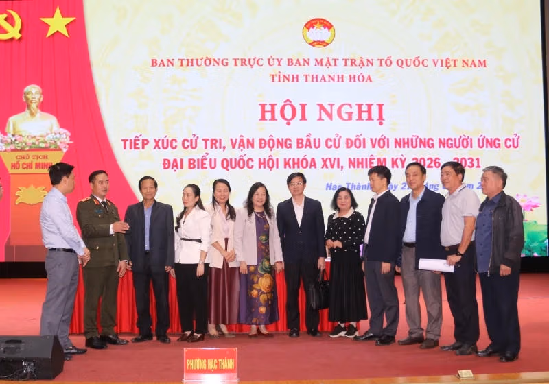 Ban Thường trực Ủy ban MTTQ Việt Nam tỉnh Thanh Hóa vừa tổ chức hội nghị tiếp xúc cử tri, vận động bầu cử đối với 25 người ứng cử ĐBQH khóa XVI, nhiệm kỳ 2026-2031 tại 5 đơn vị bầu cử. Các ứng cử viên cam kết phát huy vai trò 'cầu nối' giữa cử tri với Quốc hội, lắng nghe, phản ánh trung thực ý chí, nguyện vọng của nhân dân.