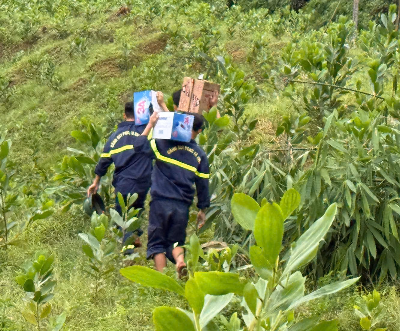 Dù phải đi bộ cắt rừng, vác lương thực dọc tuyến đường dài vài cây số nhưng đến trưa 27/8, các chiến sĩ Công an đã hoàn thành nhiệm vụ.