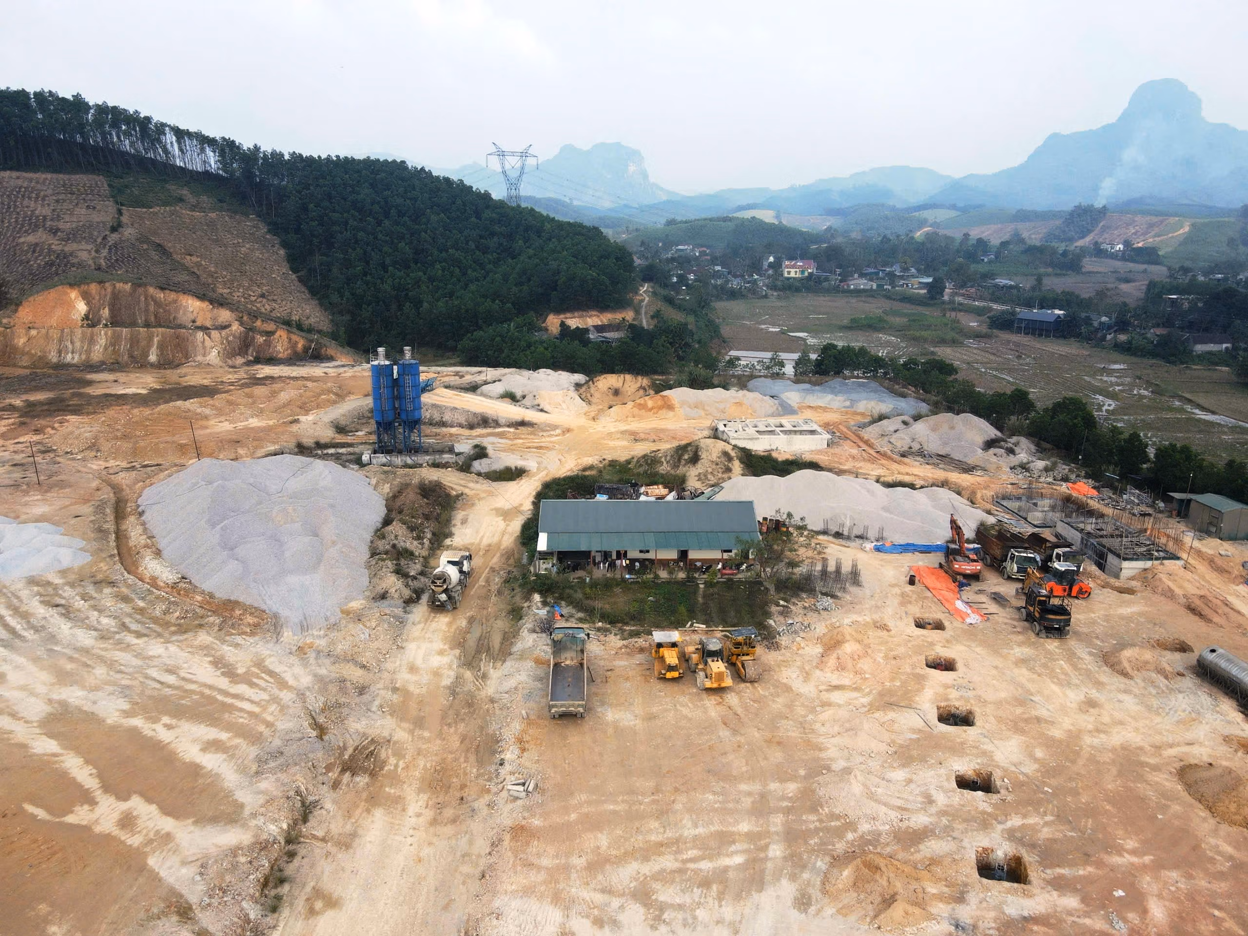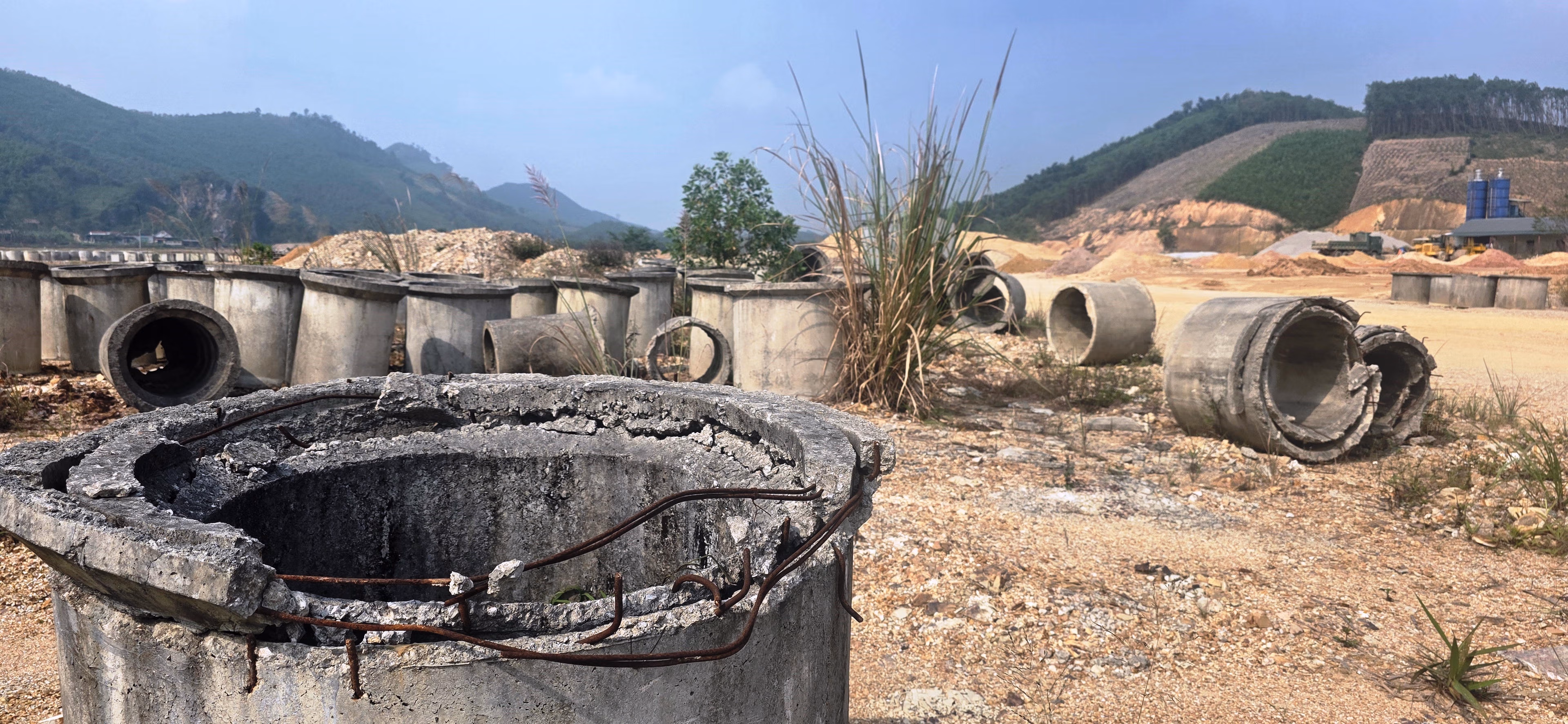 Theo ghi nhận thực tế của phóng viên: Tại CCN Thượng Ninh, trên diện tích toàn bộ mặt bằng vẫn nằm trong tình trạng dang dở. Nhiều khu vực chỉ mới được san gạt mặt bằng, các tuyến đường nội bộ mới thi công được một phần nền, chưa được trải nhựa hoàn thiện. Một số vật liệu xây dựng như ống cống bê tông, đá dăm, cát sỏi được tập kết thành từng đống rải rác khắp khu vực, trong khi máy móc, phương tiện và công nhân thi công rất thưa thớt.
