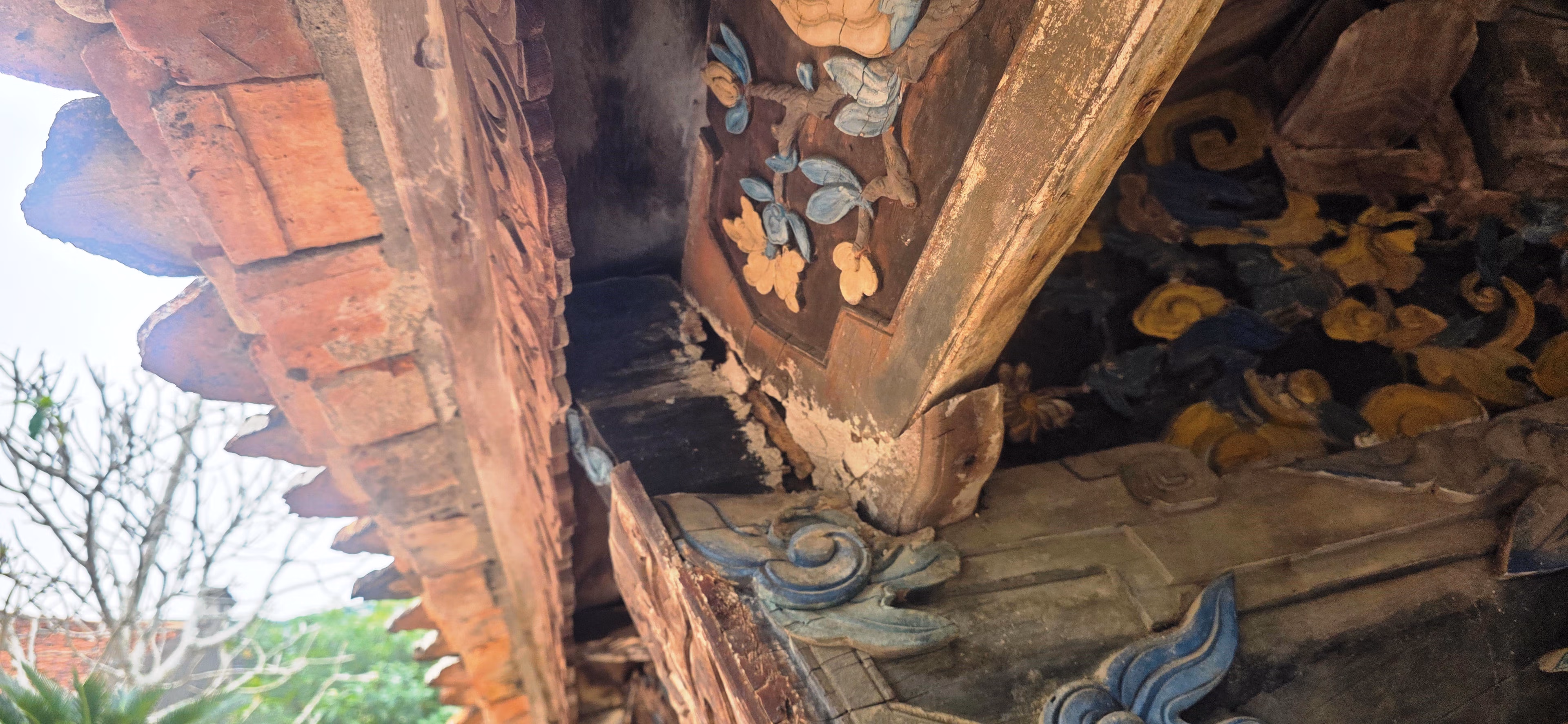 Tuy nhiên, trải qua dâu bể thăng trầm 400 năm, đến nay nhiều hạng mục của nghè đã bắt đầu bị xuống cấp, hư hỏng nghiêm trọng. Theo quan sát của chúng tôi: Ở phần mái trước, các đầu kèo đã bị mục rỗng và đứt gãy, đe dọa kéo sập cả phần mái tiền. Để khắc phục, Ban quản lý nghè đã cho trát vữa bê tông phần đầu đao và dựng hai cây ống sắt, cỡ phi 90 để làm cột đỡ. Bên trong nghè, phần mái rui, đòn tay nhiều nơi bị mục gãy, tụt ngói, gây ra thấm dột. Ở các thân cột chính cũng đã xuất hiện nhiều vết nứt lớn, được người dân dùng keo vá lại tạm bợ.