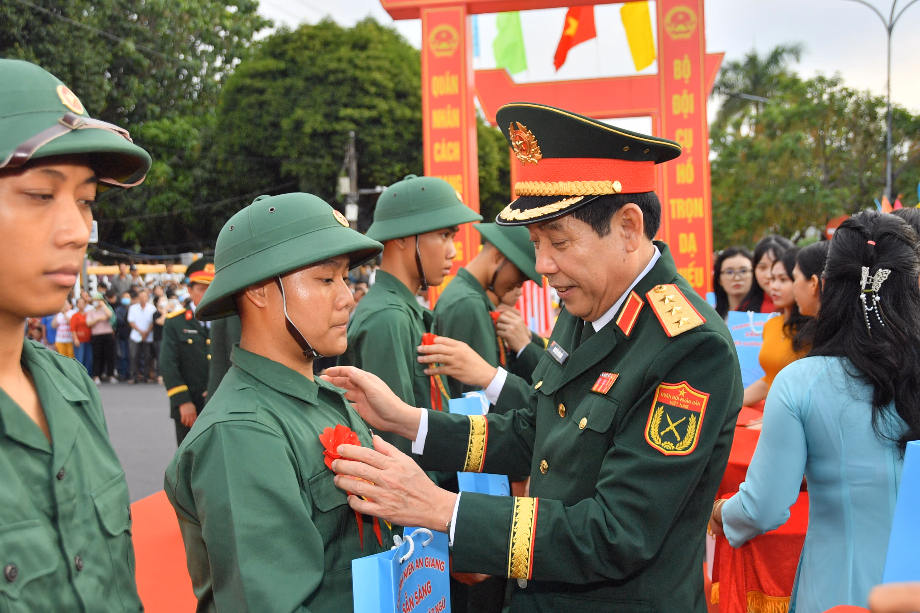 Thượng tướng Nguyễn Văn Gấu - Ủy viên Trung ương Đảng, Ủy viên Quân ủy Trung ương, Thứ trưởng Bộ Quốc phòng dự tại điểm giao nhận quân số 1: Ban chỉ huy Phòng thủ khu vực 2-Long Xuyên, tỉnh An Giang. Cùng dự có Ủy viên Trung ương Đảng, Chủ tịch UBND tỉnh An Giang Hồ Văn Mừng; Trung tướng Nguyễn Xuân Dắt, Tư lệnh Quân khu 9.