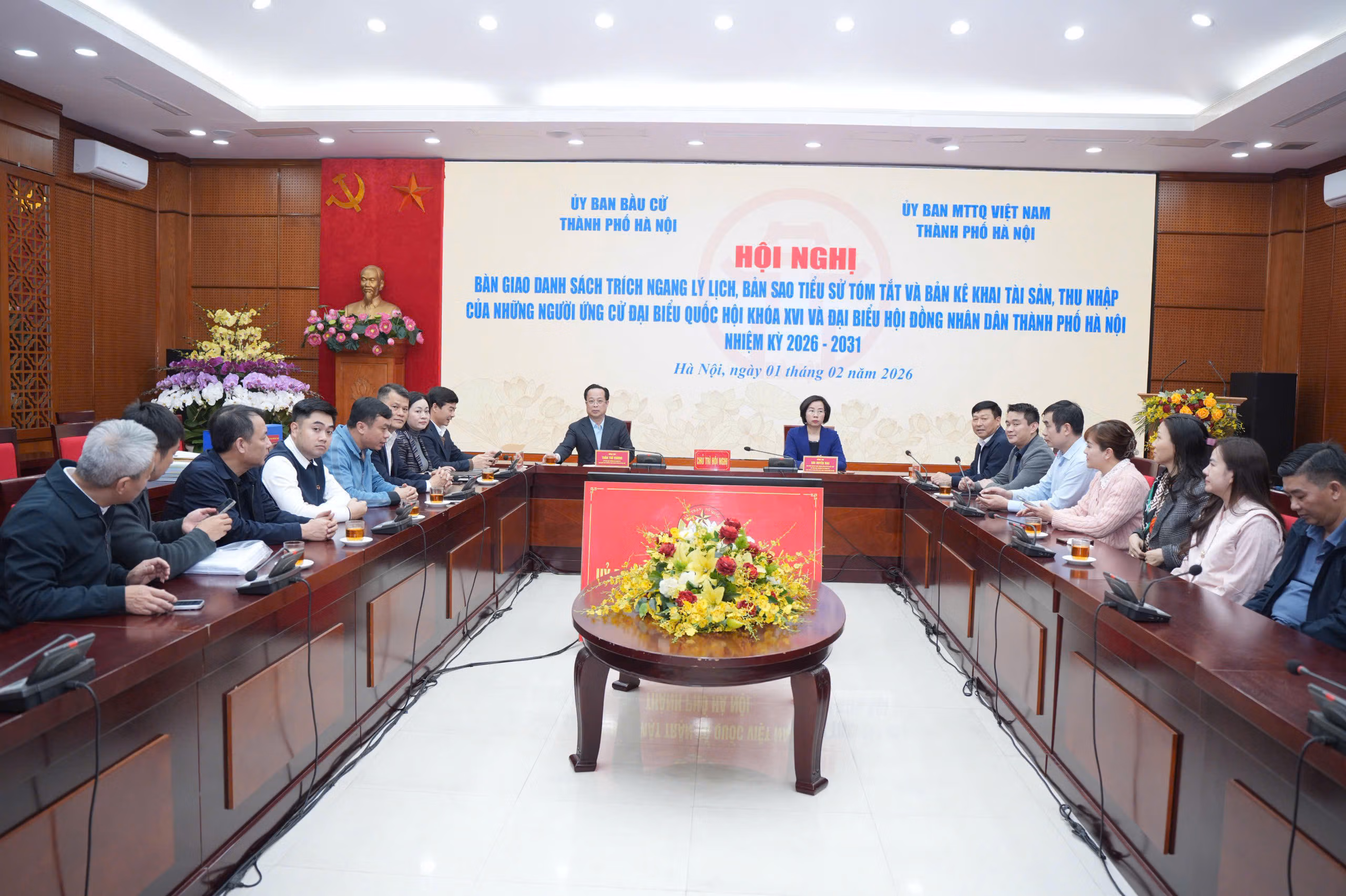 20h ngày 1/2, tại Trụ sở Ủy ban MTTQ Việt Nam thành phố Hà Nội đã diễn ra Hội nghị bàn giao danh sách trích ngang lý lịch, bản sao tiểu sử tóm tắt và bản kê khai tài sản, thu nhập của những người ứng cử đại biểu Quốc hội khóa XVI và đại biểu HĐND thành phố Hà Nội nhiệm kỳ 2026-2031.