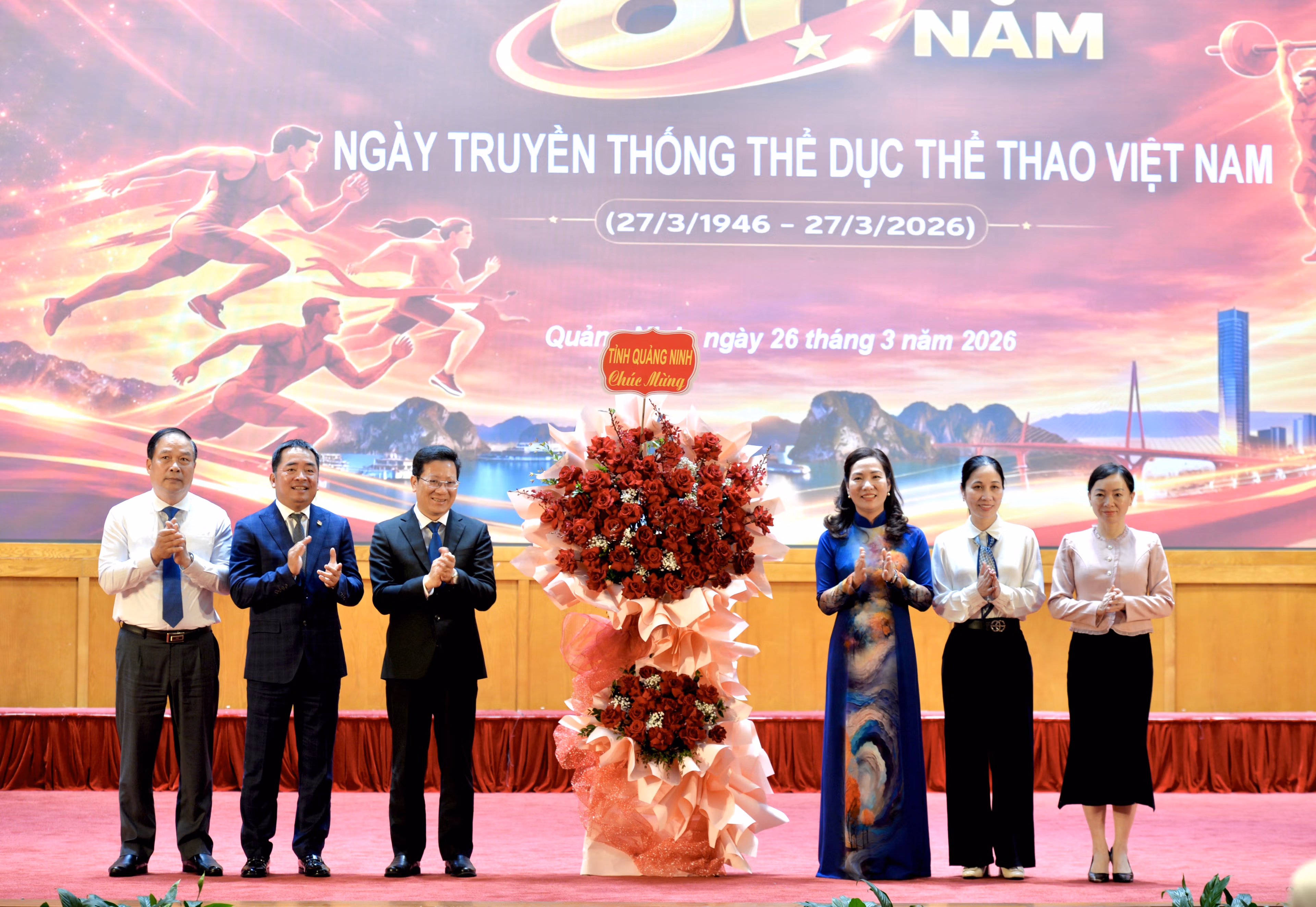 Ngày 26/3, Sở Văn hóa, Thể thao và Du lịch tỉnh Quảng Ninh tổ chức kỷ niệm 80 năm Ngày truyền thống ngành thể dục thể thao Việt Nam 27/3 (1946-2026). Thứ trưởng Bộ Văn hóa, Thể thao và Du lịch Hoàng Đạo Cương dự lễ kỷ niệm và tặng hoa chúc mừng.