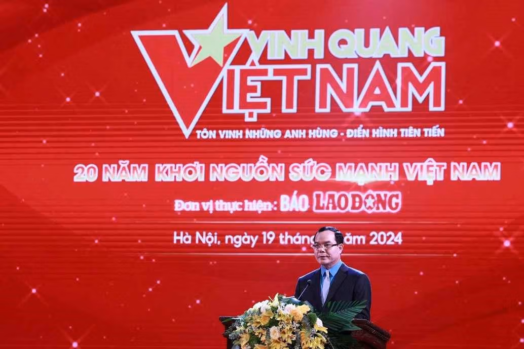 Chiều 19/5, Tổng Liên đoàn Lao động (LĐLĐ) Việt Nam phối hợp với báo Lao động tổ chức Chương trình Vinh quang Việt Nam 2024 với chủ đề “20 năm khơi nguồn sức mạnh Việt Nam”.