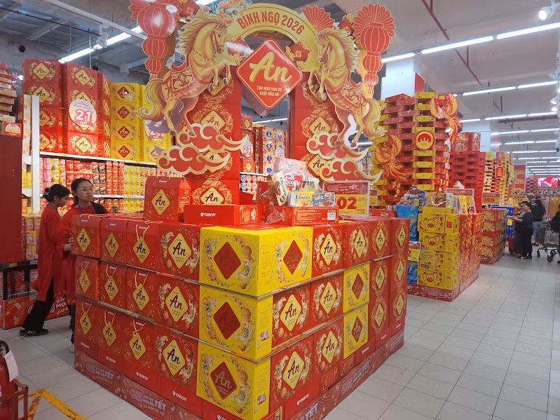 Cụ thể, AeonMall mở cửa từ 16h ngày mùng Một (17/02/2026) và duy trì trong ngày mùng Hai. Xu hướng mua sắm ngày mùng Hai nghiêng về thực phẩm tươi sống, rau củ, thủy hải sản, thịt; hoa tươi, trái cây dâng lễ giữ sức mua ổn định; tại siêu thị, giá niêm yết cố định, kèm chương trình khuyến mại khai xuân.