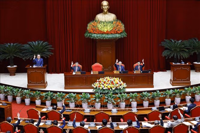 Trung ương thảo luận, cho ý kiến về các nội dung trên và biểu quyết thông qua Nghị quyết Hội nghị lần thứ hai Ban Chấp hành Trung ương Đảng. Đồng chí Tổng Bí thư Tô Lâm phát biểu bế mạc Hội nghị.