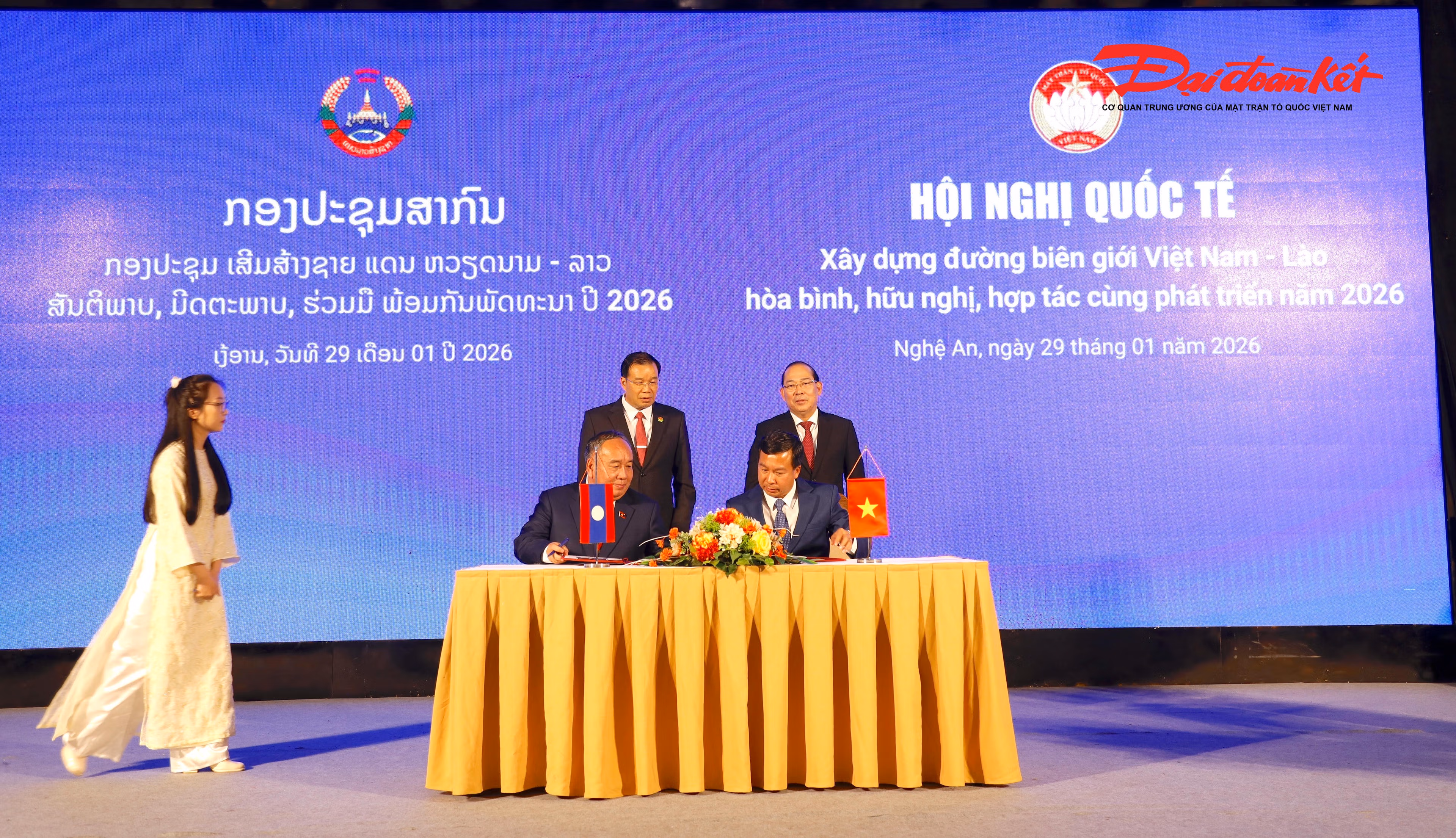 Hôm nay, ngày 29 tháng 1 năm 2026 tại tỉnh Nghệ An, nước Cộng hòa Xã hội Chủ nghĩa Việt Nam, Ủy ban Trung ương Mặt trận Tổ quốc Việt Nam phối hợp với Ủy ban Trung ương Mặt trận Lào xây dựng đất nước, sau đây gọi chung là “hai Bên”, tổ chức Hội nghị quốc tế về xây dựng đường biên giới Việt Nam - Lào hòa bình, hữu nghị, hợp tác cùng phát triển năm 2026.