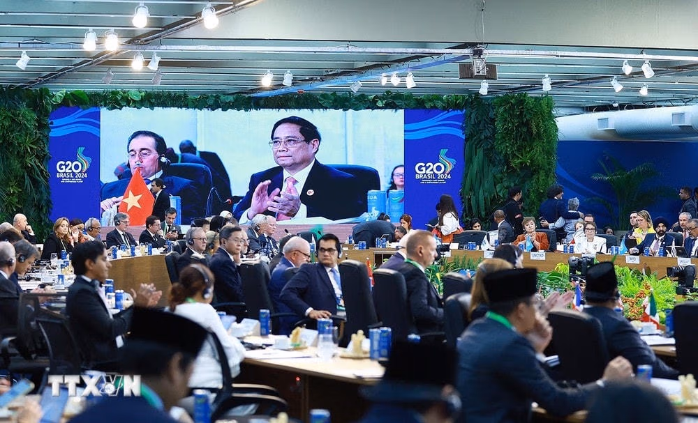 Theo đặc phái viên TTXVN, ngày 19/11 theo giờ địa phương, tại Rio de Janeiro (Brazil), Hội nghị thượng đỉnh G20 năm 2024 đã tiếp tục diễn ra với Phiên thảo luận về phát triển bền vững và chuyển đổi năng lượng dưới sự chủ trì của Tổng thống Brazil Luiz Inácio Lula da Silva, Chủ tịch G20 năm nay.
