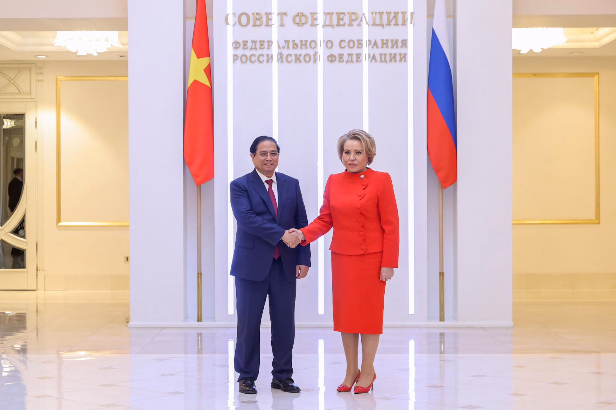 Ngày 23/3, tại trụ sở Hội đồng Liên bang (Thượng viện) Nga ở thủ đô Moskva, trong khuôn khổ chuyến thăm chính thức Liên bang Nga, Thủ tướng Chính phủ Phạm Minh Chính đã có cuộc hội kiến với Chủ tịch Hội đồng Liên bang Nga Valentina Matviyenko.