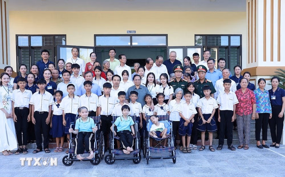 Thăm và tặng quà trẻ em, người tàn tật tại Trung tâm công tác xã hội tỉnh Quảng Bình - nơi đang chăm sóc, nuôi dưỡng 80 đối tượng yếu thế, người khuyết tật, trẻ em có hoàn cảnh đặc biệt trên địa bàn tỉnh, Thủ tướng Chính phủ Phạm Minh Chính biểu dương tỉnh Quảng Bình nói chung và Trung tâm nói riêng đã thực hiện tốt chủ trương, chính sách của Đảng, Nhà nước liên quan, không hy sinh tiến bộ, công bằng xã hội, an sinh xã hội, môi trường để đổi lấy tăng trưởng kinh tế đơn thuần.
