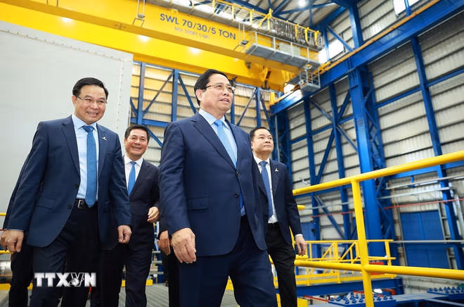 Thủ tướng khẳng định Tập đoàn Công nghiệp-Năng lượng quốc gia Việt Nam đã tham gia vào chuỗi sản xuất, chuỗi cung ứng toàn cầu; là tập đoàn đa quốc gia của Việt Nam - tập đoàn kinh tế Nhà nước hàng đầu Việt Nam với tinh thần chiến binh, dám nghĩ, dám làm, dám dấn thân và vượt qua chính mình, có khả năng làm tổng thầu EPC những công trình năng lượng lớn.