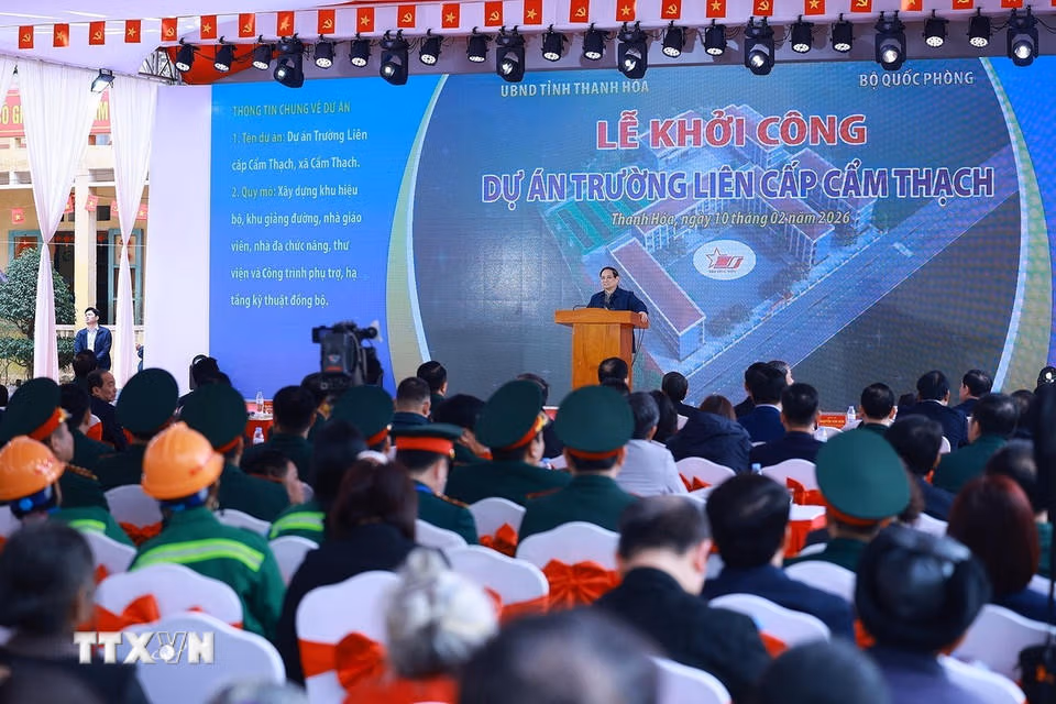 Sáng 10/2, Thủ tướng Phạm Minh Chính dự Lễ khởi công dự án Trường tiểu học Cẩm Thạch; thăm, tặng quà cho gia đình chính sách, hộ nghèo, công nhân lao động có hoàn cảnh khó khăn của tỉnh Thanh Hóa.
