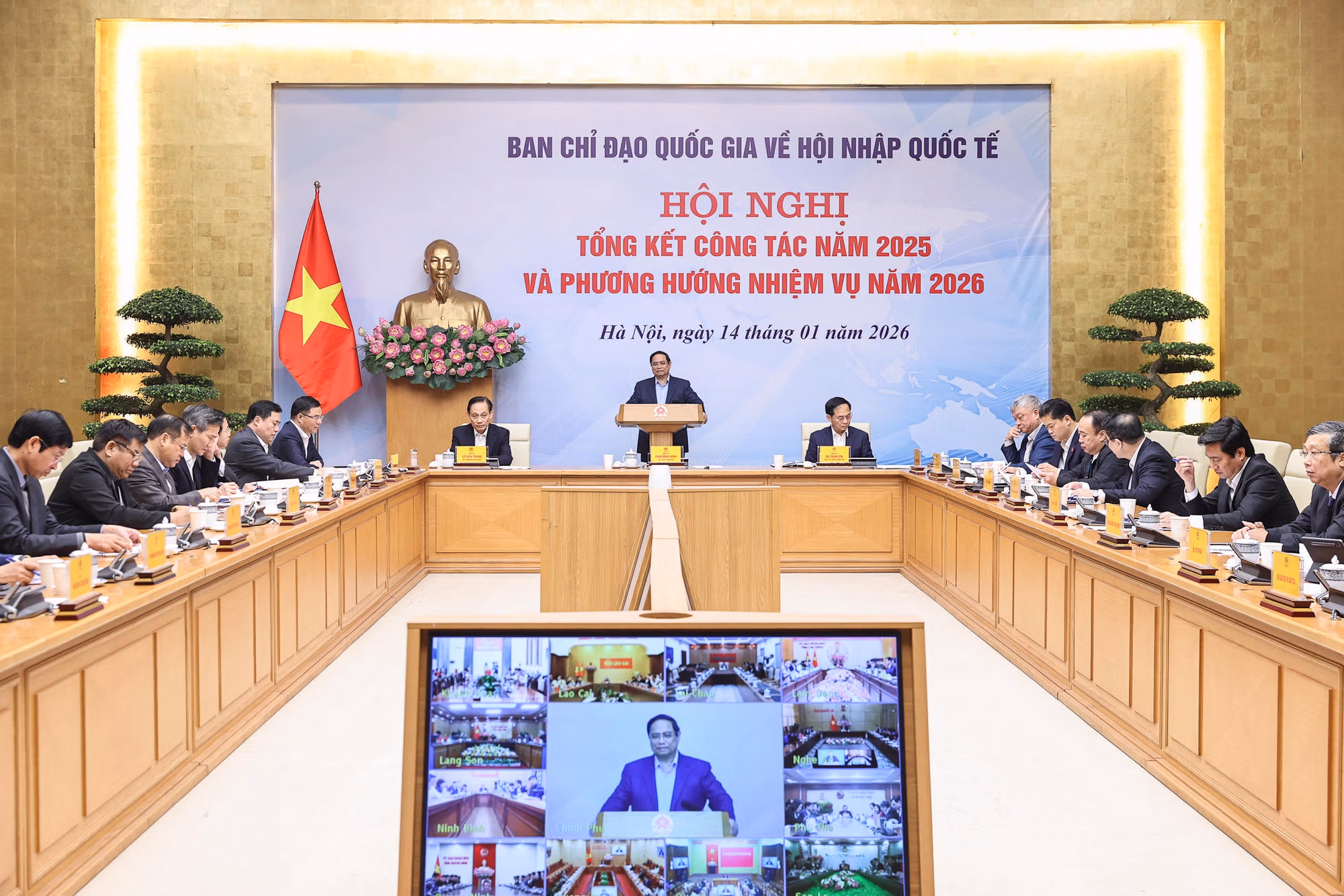 Sáng 14/1, Thủ tướng Chính phủ Phạm Minh Chính, Trưởng Ban Chỉ đạo quốc gia về hội nhập quốc tế chủ trì Hội nghị tổng kết công tác năm 2025, triển khai nhiệm vụ năm 2026 của Ban Chỉ đạo.