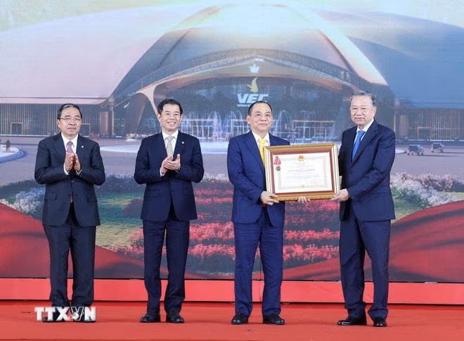 Cũng tại Chương trình, Tổng Bí thư Tô Lâm, Thủ tướng Chính phủ Phạm Minh Chính đã trao các phần thưởng cao quý của Đảng, Nhà nước, Thủ tướng Chính phủ tặng các tổ chức, cá nhân có thành tích xuất sắc đột xuất, thực hiện phong trào thi đua đẩy mạnh phát triển kết cấu hạ tầng đồng bộ, hiện đại, thực hành tiết kiệm, chống lãng phí, góp phần xây dựng chủ nghĩa xã hội và bảo vệ Tổ quốc.
