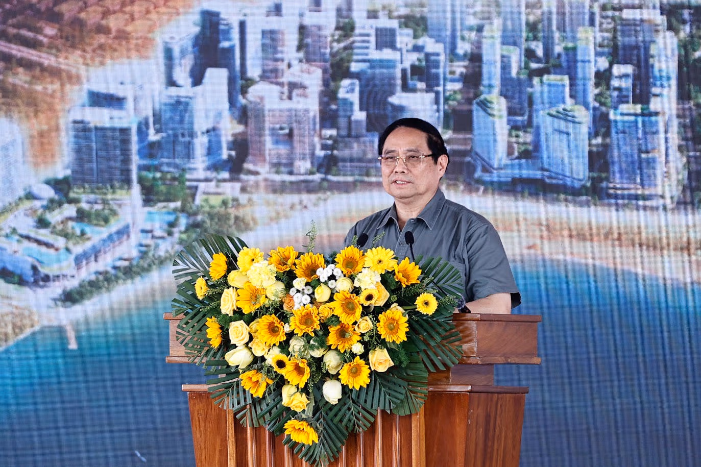 Phát biểu tại lễ khởi công, Thủ tướng Phạm Minh Chính đánh giá việc khởi công các dự án ngay sau thành công rất tốt đẹp của Đại hội Đảng toàn quốc lần thứ XIV cho thấy tinh thần"lựa chọn đúng - triển khai nhanh - làm đến nơi đến chốn - đo lường bằng kết quả", với quyết tâm cao, nỗ lực lớn, hành động quyết liệt, làm việc nào ra việc đó, làm việc nào dứt việc đó; phân công 6 rõ: Rõ người, rõ việc, rõ thời gian, rõ trách nhiệm, rõ thẩm quyền, rõ sản phẩm; lấy người dân, doanh nghiệp làm trung tâm, chủ thể trong quá trình phát triển.