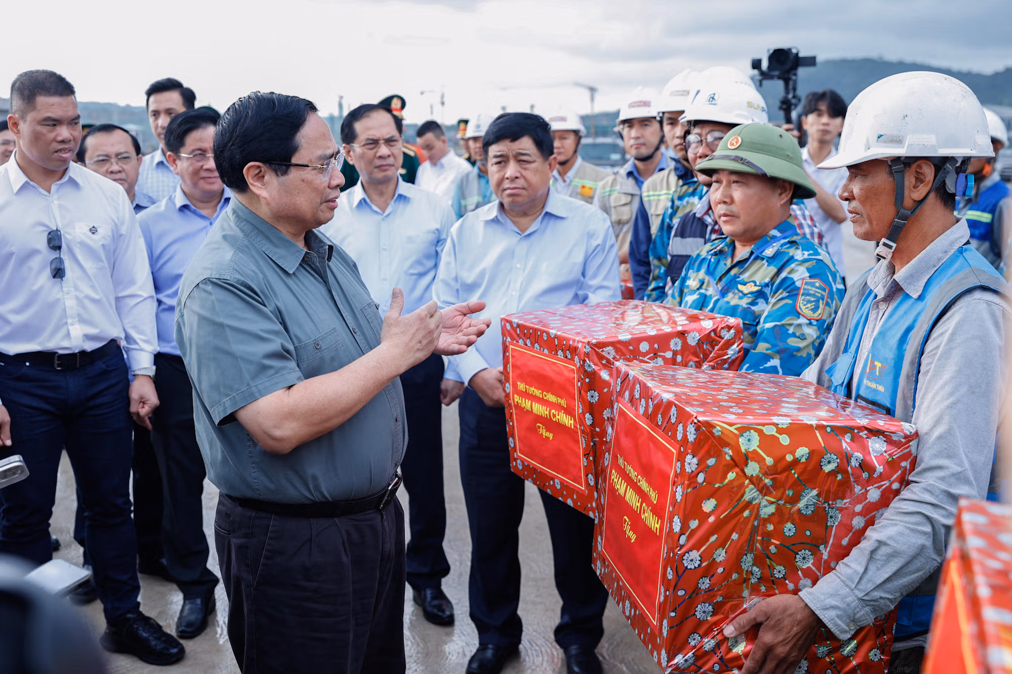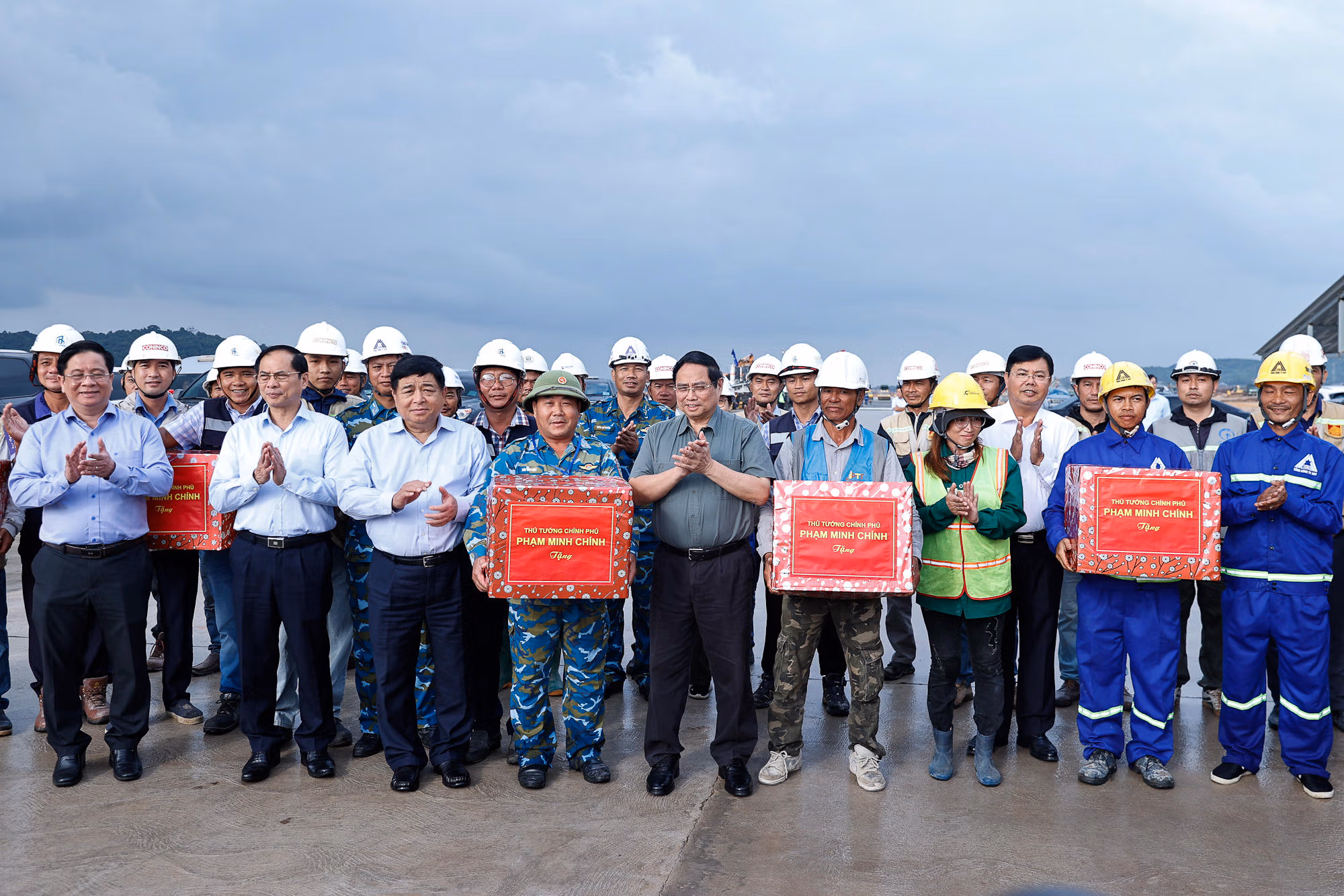 Tặng quà, động viên đội ngũ cán bộ, kỹ sư, công nhân trên công trường, Thủ tướng cho rằng các công trình trọng điểm vừa phục vụ Hội nghị APEC, nâng cao vị thế đất nước, vừa góp phần hoàn thiện hệ thống hạ tầng quốc gia, nên việc được tham gia xây dựng là niềm vinh dự. Trong đó, với dự án cảng hàng không quốc tế Phú Quốc vừa thi công, vừa khai thác, Thủ tướng mong đội ngũ cán bộ, công nhân nêu cao tinh thần trách nhiệm, đoàn kết, thống nhất, triển khai công việc đúng quy trình, quy định, chủ động, sáng tạo, bám sát đường găng tiến độ để hoàn thành dự án.
