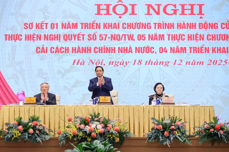 Chiều 18/12, Thủ tướng Chính phủ Phạm Minh Chính, Trưởng ban Chỉ đạo của Chính phủ về phát triển khoa học, công nghệ, đổi mới sáng tạo, chuyển đổi số và Đề án 06 đã chủ trì Hội nghị sơ kết 1 năm triển khai Chương trình hành động của Chính phủ thực hiện Nghị quyết số 57-NQ/TW, 5 năm thực hiện chương trình tổng thể cải cách hành chính Nhà nước; 4 năm triển khai Đề án 06.