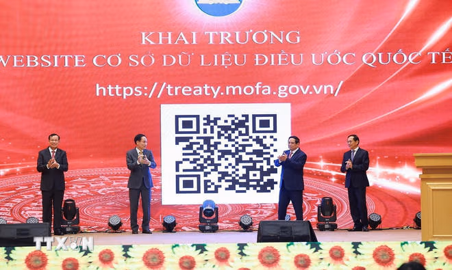 Tại hội nghị, Thủ tướng Chính phủ Phạm Minh Chính, Phó Thủ tướng Chính phủ Bùi Thanh Sơn và đại diện lãnh đạo các bộ, ngành đã thực hiện nghi thức khai trương Cơ sở dữ liệu về Điều ước quốc tế do Bộ Ngoại giao xây dựng, quản lý./.