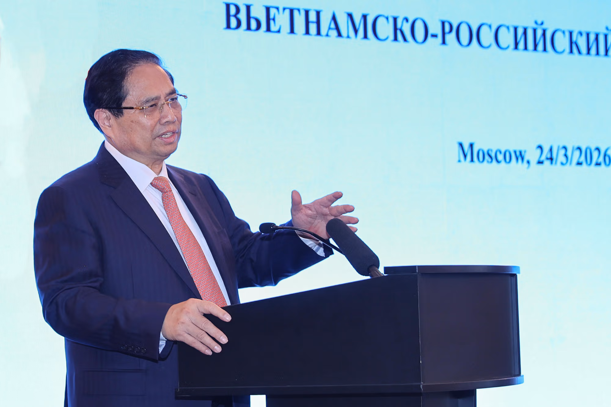 Trong chương trình thăm chính thức Liên bang Nga, chiều 24/3 (theo giờ địa phương), tại Moscow, Thủ tướng Chính phủ Phạm Minh Chính đã dự Diễn đàn doanh nghiệp Việt Nam – Liên bang Nga.