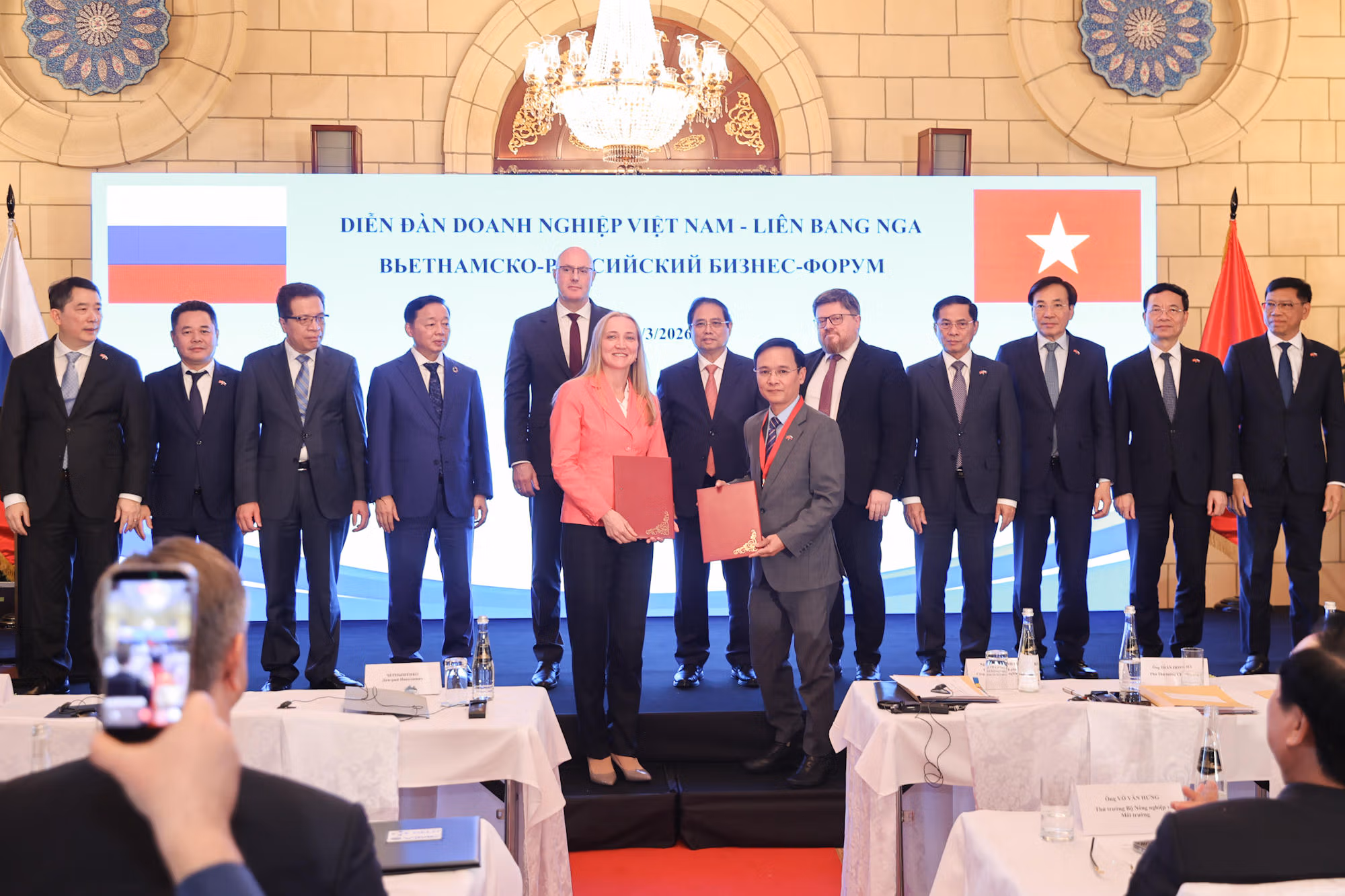 Điểm lại quá trình quan hệ thuỷ chung Việt Nam – Liên bang Nga suốt hơn 75 năm qua, Thủ tướng Chính phủ cho biết, hợp tác hai nước là không có rào cản, không có giới hạn. Trong đó, hợp tác kinh tế-thương mại thời gian qua liên tục phát triển. Kim ngạch thương mại song phương năm 2025 đạt 4,77 tỷ USD. Nga hiện có 199 dự án tại Việt Nam với tổng số vốn đăng ký đạt 990 triệu USD, đứng thứ 26/147 quốc gia và vùng lãnh thổ có đầu tư tại Việt Nam; Việt Nam có 16 dự án tại Nga với tổng số vốn đăng ký đạt 1,6 tỷ USD.