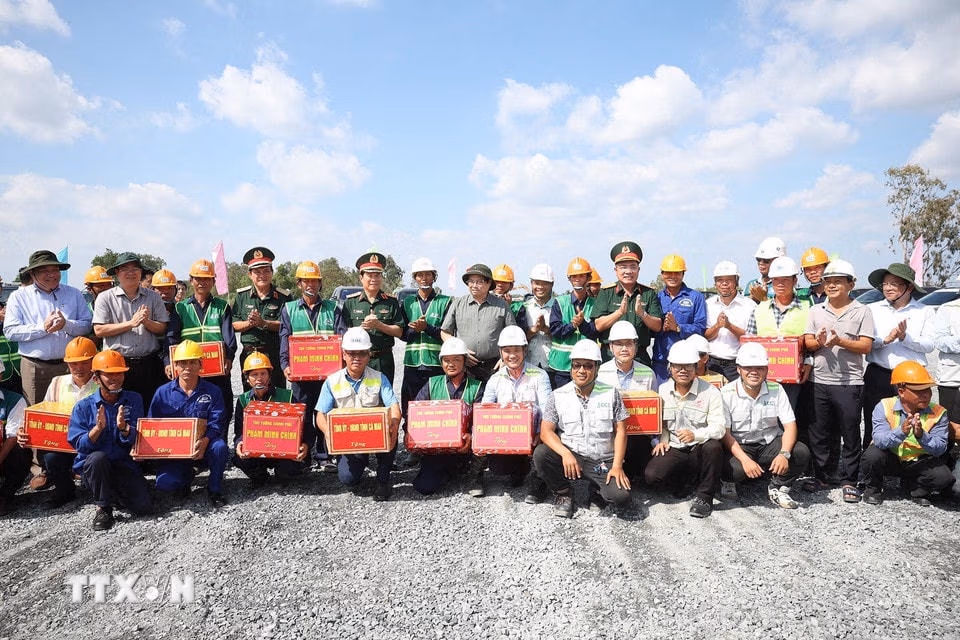 Chiều 20/4, tại Cà Mau, Thủ tướng Phạm Minh Chính đến thăm, kiểm tra tiến độ thi công dự án đầu tư xây dựng đường bộ cao tốc Cần Thơ-Cà Mau thuộc Dự án đường bộ cao tốc Bắc Nam phía Đông (2021-2025).