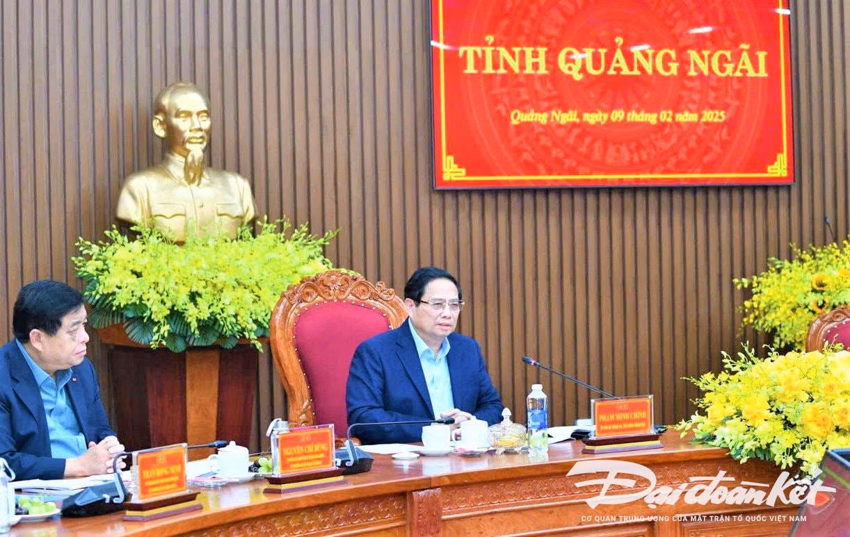 Tiếp tục chuyến công tác tại Quảng Ngãi, chiều 9/2, Thủ tướng Chính phủ Phạm Minh Chính chủ trì cuộc làm việc với Ban Thường vụ Tỉnh ủy Quảng Ngãi về tình hình phát triển kinh tế - xã hội, bảo đảm an ninh quốc phòng, an sinh xã hội, công tác xây dựng Đảng... trên địa bàn tỉnh Quảng Ngãi.