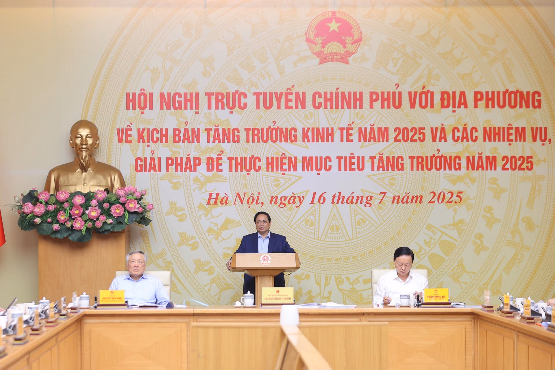 Sáng 16/7, tại Trụ sở Chính phủ, Thủ tướng Phạm Minh Chính chủ trì Hội nghị trực tuyến Chính phủ với địa phương về kịch bản tăng trưởng kinh tế năm 2025 và các nhiệm vụ, giải pháp để thực hiện mục tiêu tăng trưởng năm 2025.