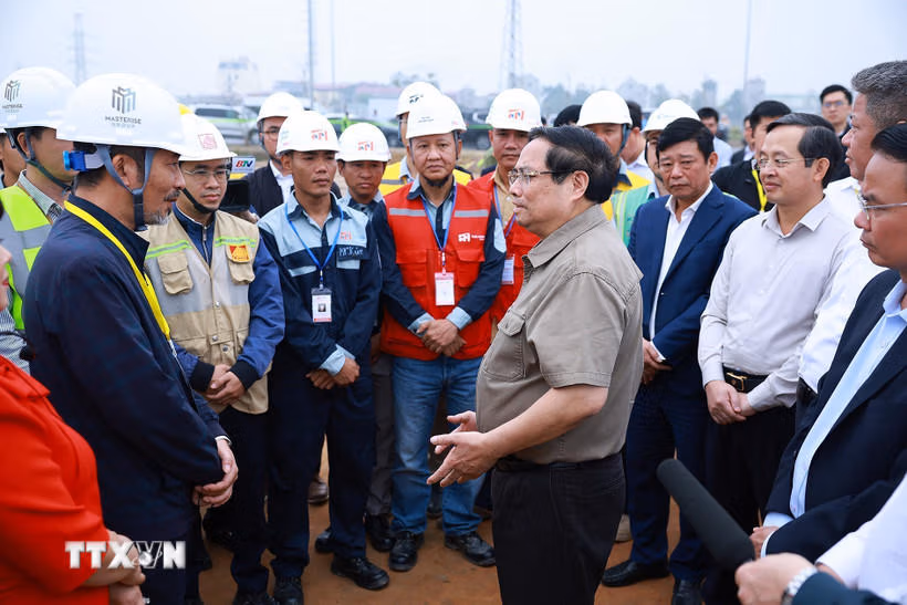 Kiểm tra dự án tại nút giao đường Vành đai 4 Thủ đô Hà Nội với đường cao tốc Sân bay Gia Bình-Hà Nội, Thủ tướng lưu ý Hà Nội phối hợp chặt chẽ với tỉnh Bắc Ninh đầu tư đồng bộ các tuyến đường kết nối; các đơn vị nhà thầu vận động kỹ sư, công nhân, tập trung lực lượng, máy móc, thiết bị, nỗ lực vượt mọi khó khăn, làm “3 ca, 4 kíp,” “ăn tranh thủ, ngủ khẩn trương,” "vượt nắng thắng mưa, không thua bão gió" để bảo đảm tiến độ dự án.