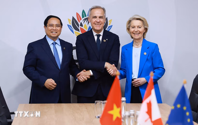 Nhân dịp Hội nghị thượng đỉnh Nhóm các nền kinh tế phát triển và mới nổi hàng đầu thế giới (G20) tại Cộng hòa Nam Phi, chiều 22/11 (giờ địa phương), Thủ tướng Chính phủ Phạm Minh Chính đã gặp Thủ tướng Canada Mark Carney và Chủ tịch Ủy ban Liên minh châu Âu (EU) Ursula von der Leyen để thảo luận về định hướng tăng cường kết nối, thúc đẩy hợp tác thương mại, đầu tư giữa các nước thành viên Hiệp định Đối tác toàn diện và tiến bộ xuyên Thái Bình Dương (CPTPP) và EU.