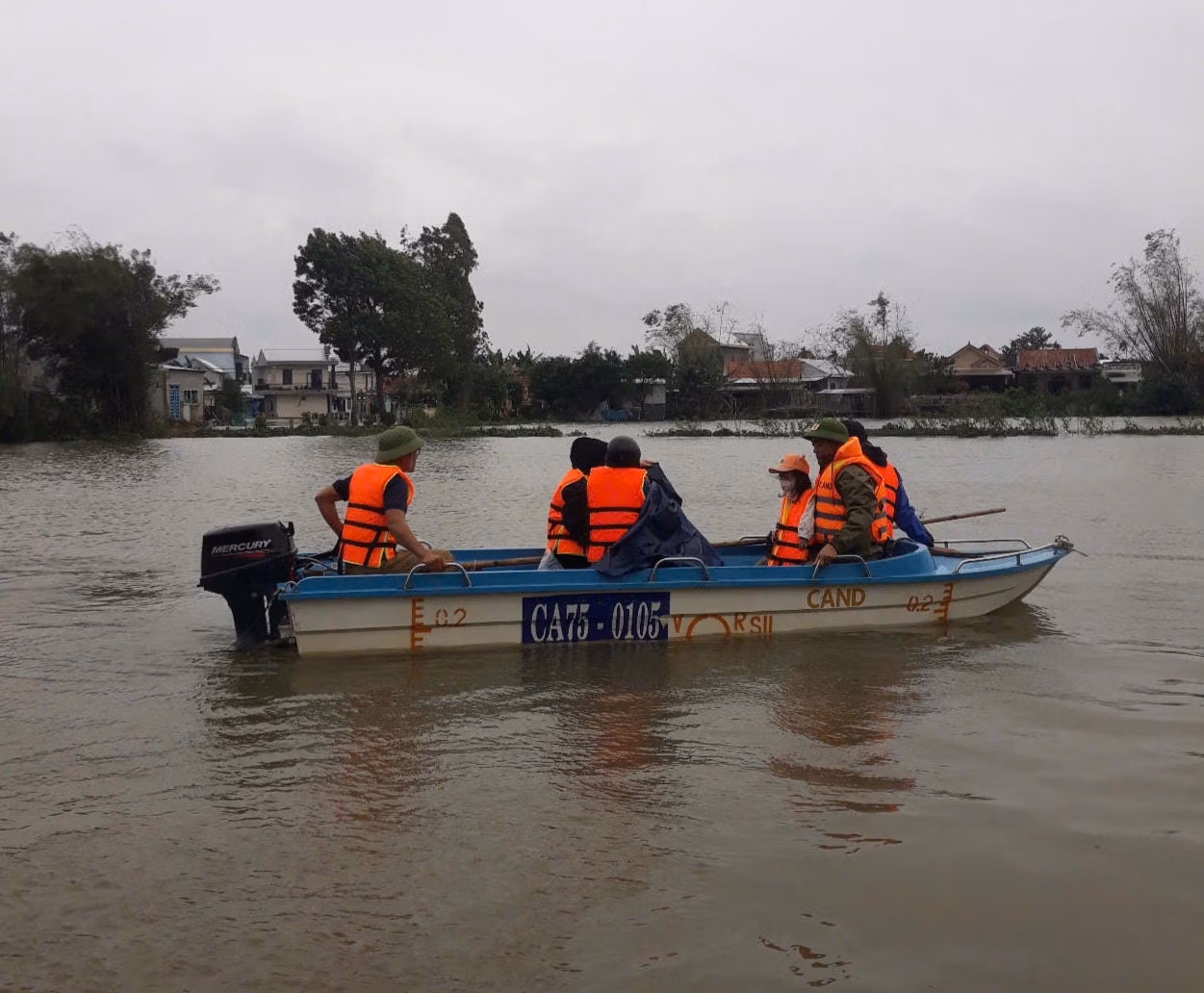 Ngày 26/11, thông tin từ UBND xã Quảng An (huyện Quảng Điền, tỉnh Thừa Thiên - Huế), lực lượng chức năng kịp thời dùng cano để đưa người dân đi cấp cứu giữa thời điểm mưa lũ.