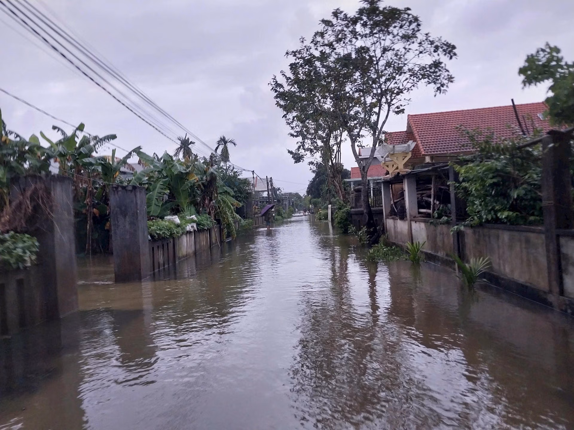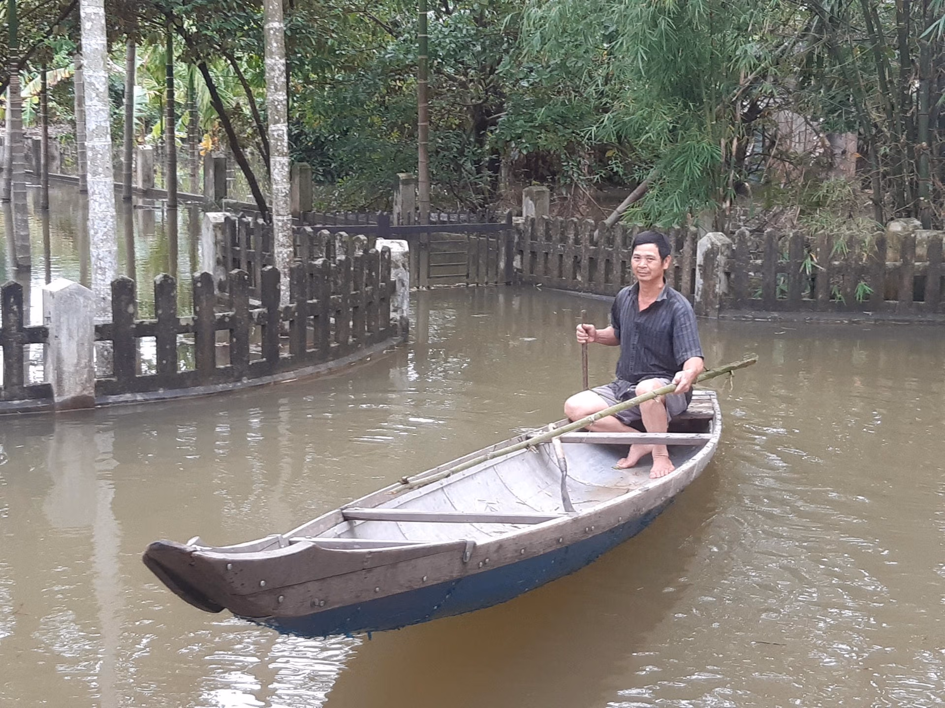 Thừa Thiên - Huế: Nhiều nơi ngập sâu, người dân đi lại bằng thuyền Thứ Ba 26/11/2024 10:20 (GMT+7) Mưa lớn nhiều giờ qua khiến nhiều nơi tại tỉnh Thừa Thiên - Huế bị ngập, người dân sử dụng thuyền để đi lại. Sáng 26/11, tại tỉnh Thừa Thiên - Huế nước trên các sông bắt đầu rút chậm. Ảnh: N.Q.Tại một số địa phương vùng thấp trũng vẫn còn bị ngập, giao thông đi lại gặp nhiều khó khăn. Ảnh: N.Q.Tại thôn Xuân Tùy, xã Quảng Phú, huyện Quảng Điền, tỉnh Thừa Thiên - Huế phải sử dụng thuyền để đi lại. Ảnh: N.Q.Anh Nguyễn Tuấn Hiệp (trú tại thôn Xuân Tùy) cho biết, Xuân Tùy là địa phương nằm ở hạ du của sông Bồ có địa hình thấp trũng nên hiện nay vẫn ngập trong nước. Một số nơi tại địa phương bị ngập, có nơi ngập sâu đến 1,5m, người dân phải đi lại bằng thuyền. "Người dân ở đây cũng quá quen với cảnh này, trước mỗi mùa mưa lũ, bà con nơi đây luôn chủ động để ứng phó với thiên tai", anh Hiệp nói.Nhiều tuyến đường tại thôn Xuân Tùy bị ngập từ 0,1 đến 1,5m. Ảnh: N.Q.Hiện nay, tại tỉnh Thừa Thiên - Huế mưa giảm, nước trên các sông bắt đầu rút chậm. Ảnh: N.Q.Theo Ban Chỉ huy PCTT&TKCN tỉnh Thừa Thiên - Huế, hiện nay, tình hình mưa lũ vẫn còn diễn biến hết sức phức tạp, đề nghị các địa phương tăng cường công tác quản lý, tuyên truyền đảm bảo quy định an toàn khi di chuyển trên sông hồ, vùng ngập nước trong thời gian mưa lũ. Ảnh: N.Q. Nguyễn Quốc