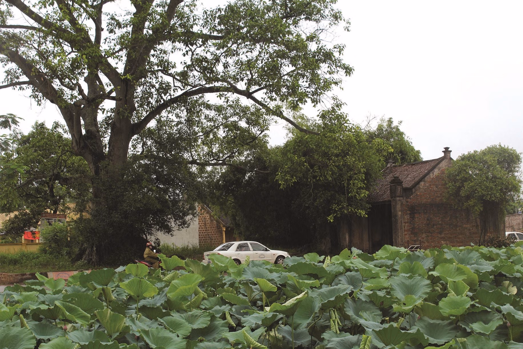 Cạnh cổng làng, có ao sen xanh ngắt, bụi tre cũng xanh, và cây đa cũng tỏa bóng xanh mát. Hẹn nhau ở cổng làng, bọn trẻ chúng tôi chơi câu cá, trốn tìm, tắm ao… Thôi thì đủ cả. Đó thực sự là “thiên đường” để được vui chơi, chạy nhảy. Vào mùa cây đa có quả, chúng tôi còn trèo lên hái xuống chấm muối ăn…