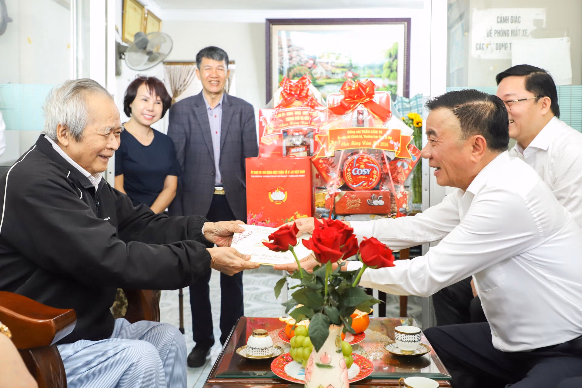 Tại các gia đình đến thăm, Thường trực Ban Bí thư Trần Cẩm Tú ân cần thăm hỏi tình hình sức khỏe, đời sống của mẹ Sự và ông Bá, bày tỏ lòng biết ơn sâu sắc đối với những cống hiến, hy sinh to lớn của gia đình chính sách, người có công cách mạng cho sự nghiệp đấu tranh giải phóng dân tộc, bảo vệ Tổ quốc;...