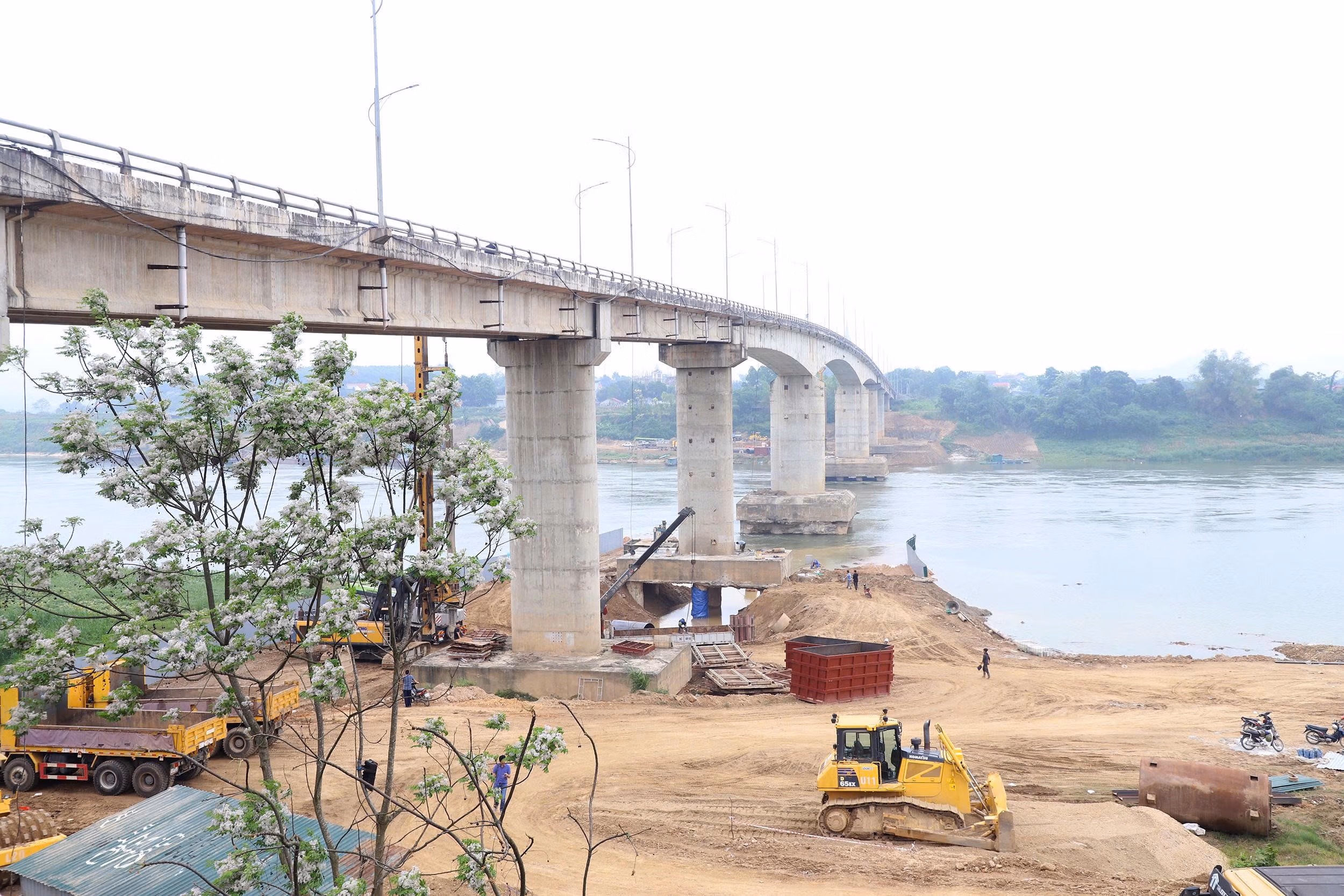 Giai đoạn 2 sửa chữa các trụ trên cạn gồm T1, T2, T7, T8 sau khi nhóm trụ T3, T6 ổn định. Giai đoạn 3 thực hiện đối với hai trụ T4, T5 vào mùa cạn tiếp theo. Tuy nhiên việc thi công hiện đang diễn ra chậm. Kiểm tra thực tế sáng nay, Phó Chủ tịch UBND tỉnh Phú Thọ Quách Tất Liêm yêu cầu nhà thầu bổ sung máy móc, huy động thiết bị và nhân lực, đồng thời xây dựng lại tiến độ thi công chi tiết, bảo đảm hoàn thành các hạng mục đã đề ra trước mùa mưa lũ năm 2026 theo chỉ đạo của UBND tỉnh.
