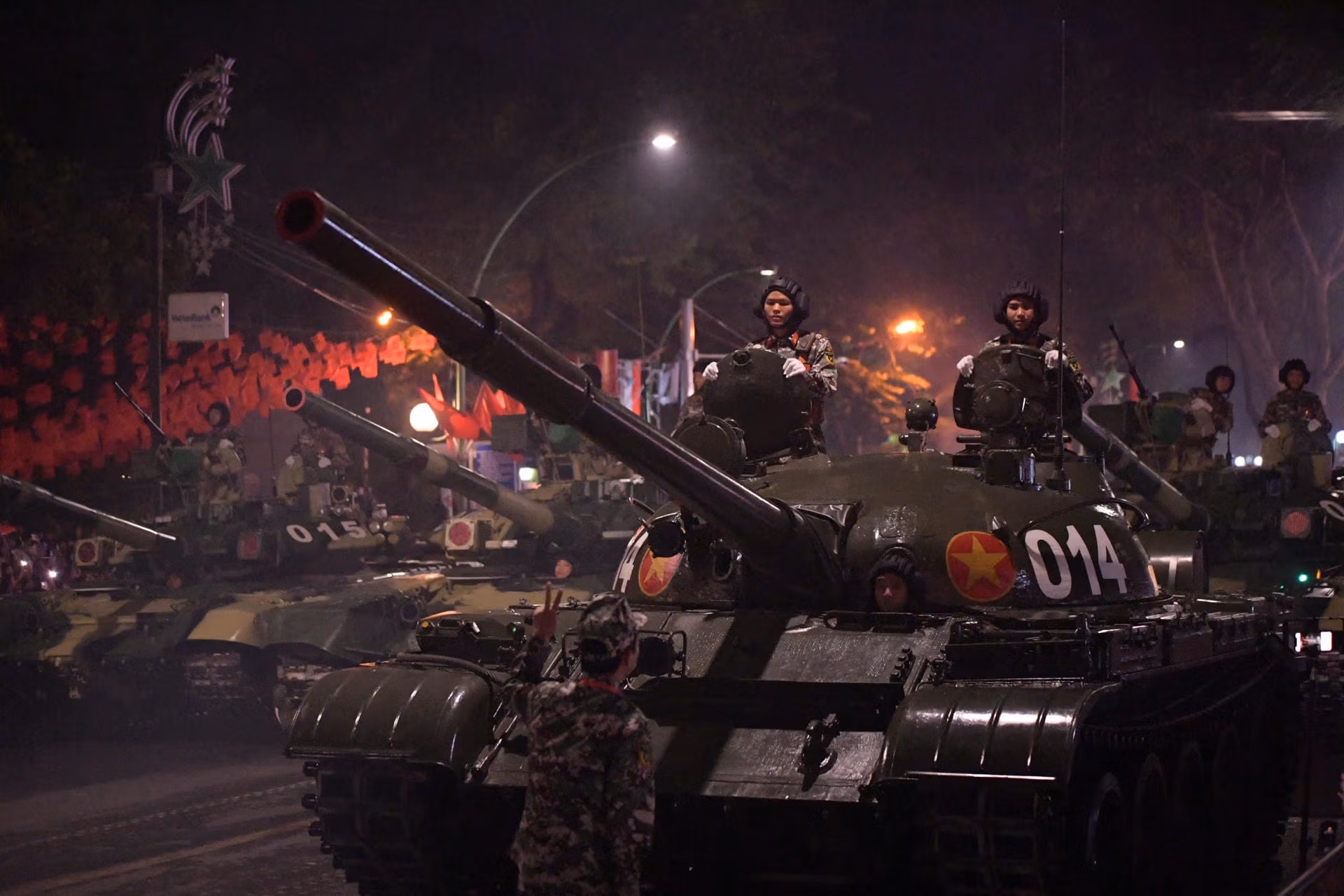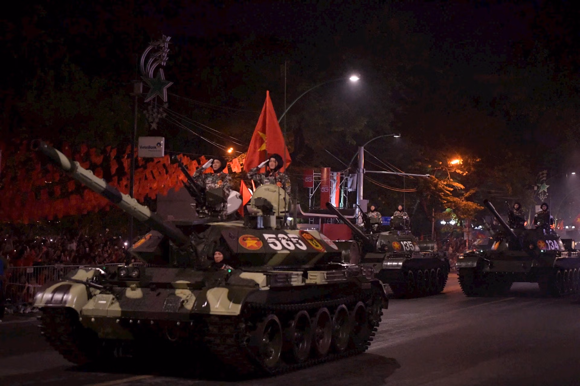 4h ngày 2/9, Đội hình tăng, thiết giáp của Quân đội nhân dân Việt Nam di chuyển đến đường Thanh Niên, hướng về khu vực tập kết trên đường Hùng Vương