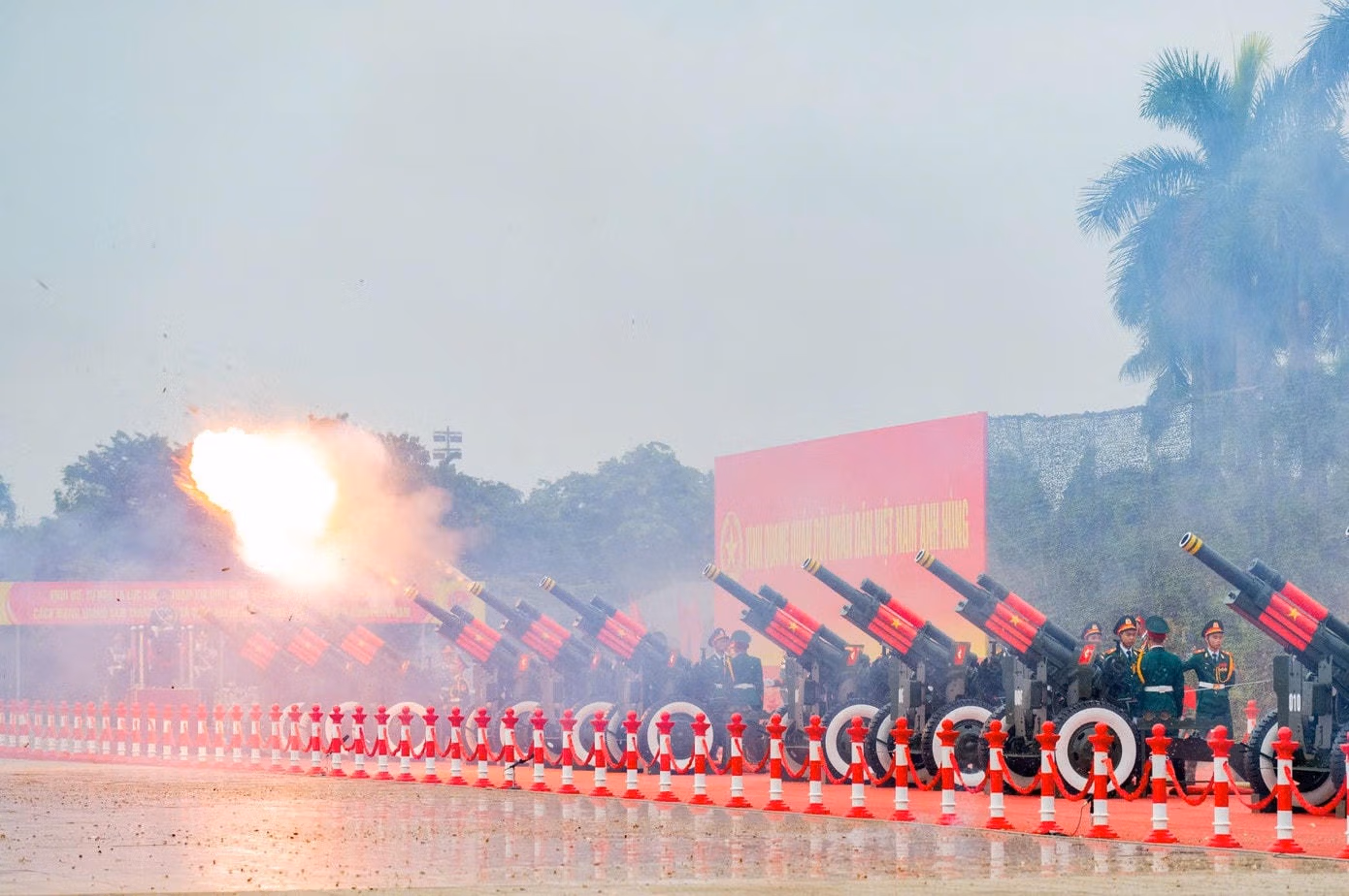 6h45, Tại Lễ kỷ niệm, diễu binh, diễu hành 80 năm Cách mạng tháng Tám thành công và Quốc khánh nước Cộng hòa xã hội chủ nghĩa Việt Nam diễn ra ở Quảng trường Ba Đình, dàn pháo lễ 105mm bố trí ở khu vực Mỹ Đình thực hiện 21 loạt bắn với 63 viên đạn chào mừng đại lễ.