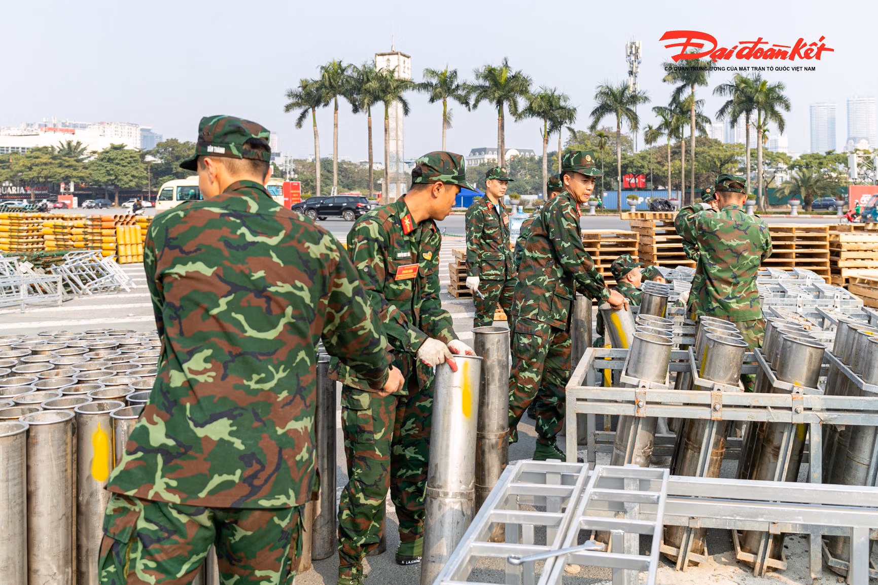 Toàn cảnh trận địa pháo hoa đang được lắp đặt ở Mỹ Đình, chào mừng Đại hội XIV của Đảng
