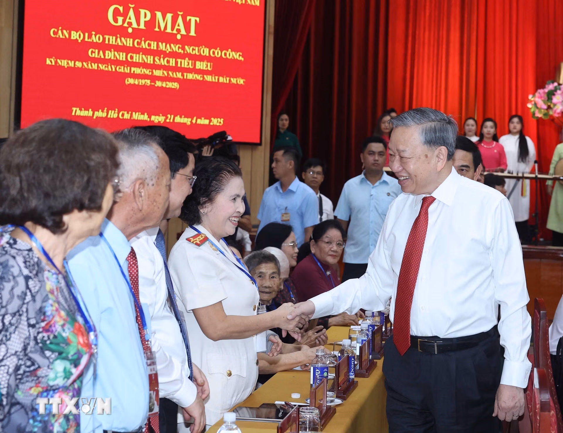 Ngày 21/4, Tổng Bí thư Tô Lâm gặp mặt cán bộ lão thành cách mạng, người có công, gia đình chính sách tiêu biểu nhân kỷ niệm 50 năm Ngày giải phóng miền Nam, thống nhất đất nước. Báo Đại Đoàn kết trân trọng giới thiệu toàn văn phát biểu của Tổng Bí thư Tô Lâm tại buổi gặp mặt.