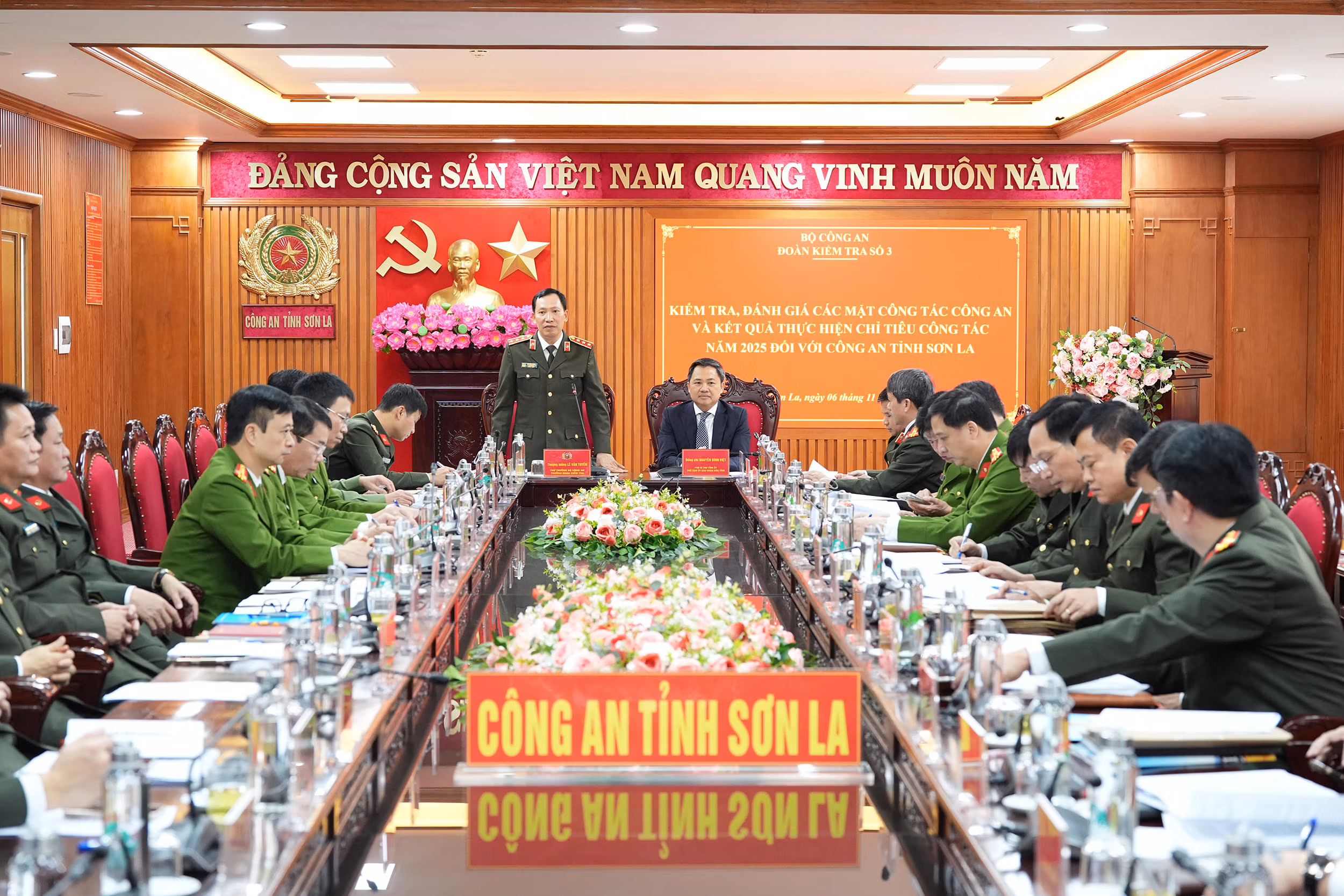 Ngày 6/11, Đoàn kiểm tra số 03 của Bộ Công an do Thượng tướng Lê Văn Tuyến, Thứ trưởng Bộ Công an làm trưởng đoàn đã có buổi kiểm tra, đánh giá các mặt công tác Công an và kết quả thực hiện chỉ tiêu công tác năm 2025 tại Công an tỉnh Sơn La.