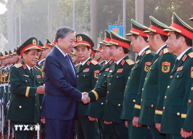 Phát biểu tại buổi lễ, Tổng Bí thư Tô Lâm nhấn mạnh trải qua hơn 81 năm xây dựng, chiến đấu, chiến thắng và trưởng thành, dưới sự lãnh đạo, giáo dục, rèn luyện của Đảng ta và Chủ tịch Hồ Chí Minh, Quân đội ta đã vượt qua muôn vàn gian lao, thử thách, cùng toàn dân làm nên những thắng lợi vĩ đại trong sự nghiệp đấu tranh giải phóng dân tộc, bảo vệ Tổ quốc và làm tròn nghĩa vụ quốc tế.
