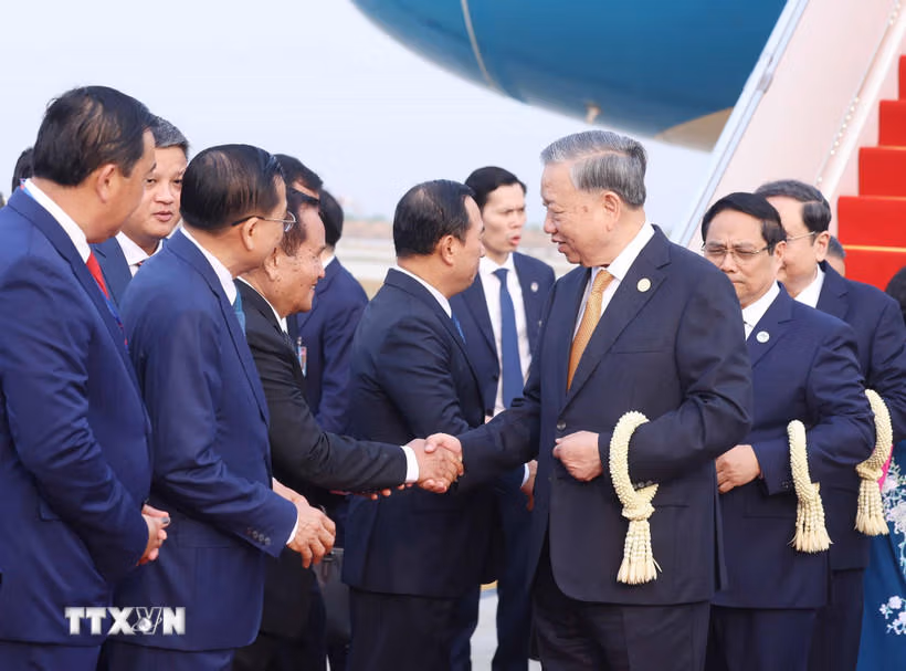 Sáng 6/2, Tổng Bí thư Tô Lâm cùng Đoàn đại biểu cấp cao Việt Nam đã đến Sân bay quốc tế Techo tại thủ đô Phnom Penh (Vương quốc Campuchia), bắt đầu chuyến thăm cấp Nhà nước tới Campuchia, theo lời mời của Quốc vương Preah Bat Samdech Preah Boromneath Norodom Sihamoni.