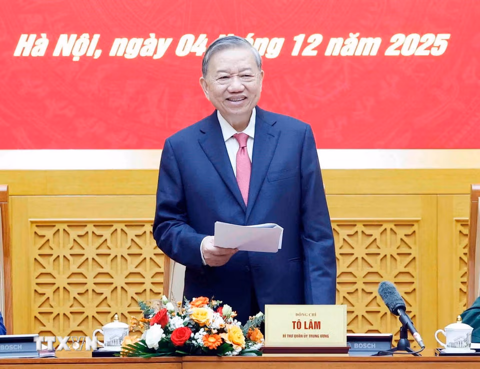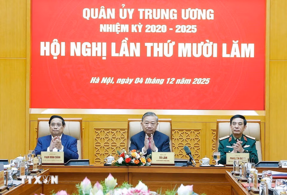 Tổng Bí thư Tô Lâm chủ trì Hội nghị Quân ủy Trung ương lần thứ 15 Thứ Năm 04/12/2025 11:44 (GMT+7) Sáng 4/12/2025, tại Hà Nội, Tổng Bí thư Tô Lâm, Bí thư Quân ủy Trung ương chủ trì Hội nghị Quân ủy Trung ương lần thứ 15. Tổng Bí thư Tô Lâm, Bí thư Quân ủy Trung ương và các đại biểu. (Ảnh: Thống Nhất/TTXVN)Tổng Bí thư Tô Lâm, Bí thư Quân ủy Trung ương và các đại biểu. (Ảnh: Thống Nhất/TTXVN)Tổng Bí thư Tô Lâm phát biểu. (Ảnh: Thống Nhất/TTXVN)Tổng Bí thư Tô Lâm, Bí thư Quân ủy Trung ương chủ trì Hội nghị Quân uỷ Trung ương lần thứ 15. (Ảnh: Thống Nhất/TTXVN)Tổng Bí thư Tô Lâm phát biểu. (Ảnh: Thống Nhất/TTXVN)Tổng Bí thư Tô Lâm, Bí thư Quân ủy Trung ương và các đại biểu. (Ảnh: Thống Nhất/TTXVN)Thủ tướng Phạm Minh Chính phát biểu. (Ảnh: Thống Nhất/ TTXVN)Tổng Bí thư Tô Lâm, Bí thư Quân ủy Trung ương chủ trì Hội nghị Quân ủy Trung ương lần thứ 15. (Ảnh: Thống Nhất/ TTXVN)Đại tướng Phan Văn Giang, Ủy viên Bộ Chính trị, Phó Bí thư Quân ủy Trung ương, Bộ trưởng Bộ Quốc phòng phát biểu. (Ảnh: Thống Nhất/TTXVN) TheoVietnam+ (VietnamPlus)
