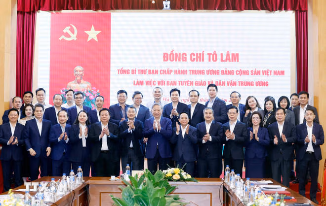 Phát biểu kết luận tại buổi làm việc, đánh giá các ý kiến trao đổi tâm huyết, sát thực tiễn và ghi nhận sự chuẩn bị nghiêm túc của Ban Tuyên giáo và Dân vận Trung ương, Tổng Bí thư Tô Lâm đề nghị thống nhất quan điểm nếu kinh tế tạo ra nội lực vật chất để đất nước đi nhanh thì chính trị, tư tưởng và văn hóa tạo ra nội lực tinh thần để dân tộc đi xa, vững hơn trong bước phát triển mới.