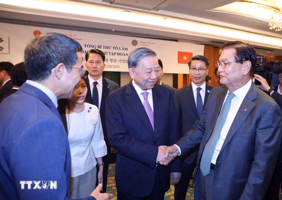 Tổng Bí thư Tô Lâm gặp gỡ lãnh đạo một số tập đoàn lớn của Hàn Quốc Thứ Ba 12/08/2025 16:42 (GMT+7) Trong chương trình chuyến thăm cấp Nhà nước tới Hàn Quốc, chiều 12/8/2025, Tổng Bí thư Tô Lâm gặp gỡ lãnh đạo một số Tập đoàn lớn của Hàn Quốc. Tổng Bí thư Tô Lâm gặp gỡ lãnh đạo một số Tập đoàn lớn của Hàn Quốc. (Ảnh: Thống Nhất/TTXVN).Tổng Bí thư Tô Lâm gặp gỡ lãnh đạo một số Tập đoàn lớn của Hàn Quốc. (Ảnh: Thống Nhất/TTXVN).Tổng Bí thư Tô Lâm gặp gỡ lãnh đạo một số Tập đoàn lớn của Hàn Quốc. (Ảnh: Thống Nhất/TTXVN).Tổng Bí thư Tô Lâm phát biểu. (Ảnh: Thống Nhất/TTXVN).Tổng Bí thư Tô Lâm phát biểu. (Ảnh: Thống Nhất/TTXVN).Các đại biểu dự buổi gặp. (Ảnh: Thống Nhất/TTXVN).Bộ trưởng Bộ Tài chính Nguyễn Văn Thắng phát biểu. (Ảnh: Thống Nhất/TTXVN).Tổng Bí thư Tô Lâm gặp gỡ lãnh đạo một số Tập đoàn lớn của Hàn Quốc. (Ảnh: Thống Nhất/TTXVN). Theo TTXVN