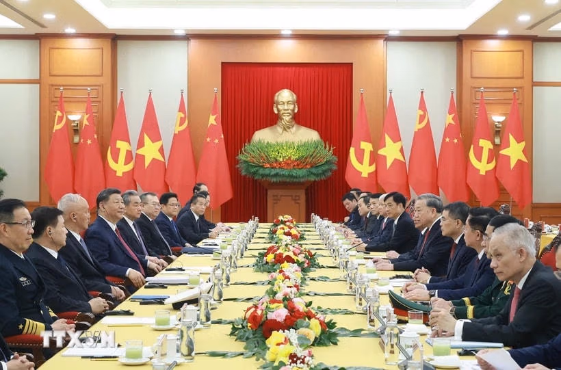 Chiều 14/4, tại Trụ sở Trung ương Đảng, ngay sau Lễ đón chính thức, Tổng Bí thư Tô Lâm đã tiến hành hội đàm với đồng chí Tập Cận Bình, Tổng Bí thư Ban Chấp hành Trung ương Đảng Cộng sản Trung Quốc, Chủ tịch nước Cộng hòa Nhân dân Trung Hoa.