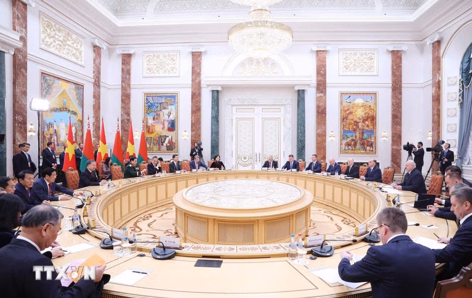 Trưa 12/5/2025, giờ địa phương (chiều cùng ngày, giờ Hà Nội), tại thủ đô Minsk, ngay sau Lễ đón cấp Nhà nước, Tổng Bí thư Tô Lâm hội đàm với Tổng thống Belarus Aleksandr Lukashenko.