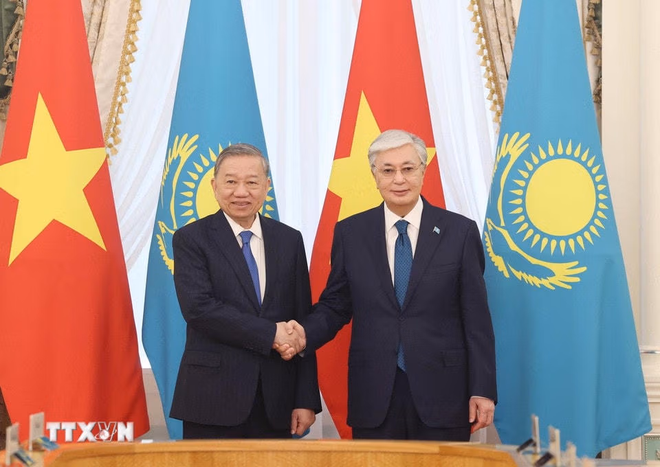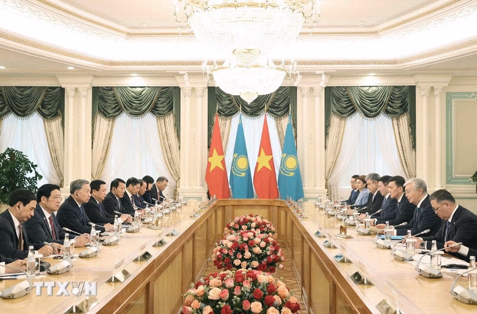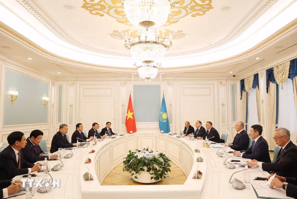 Tổng Bí thư Tô Lâm hội đàm với Tổng thống Kazakhstan Thứ Ba 06/05/2025 14:29 (GMT+7) Sáng 6/5, tại thủ đô Astana, sau Lễ đón, Tổng thống Cộng hòa Kazakhstan Kassym-Jomart Tokayev và Tổng Bí thư Tô Lâm tiến hành hội đàm. Tổng Bí thư Tô Lâm và Tổng thống Kazakhstan Kassym-Jomart Tokayev chụp ảnh chung trước hội đàm cấp Nhà nước. (Ảnh: Thống Nhất/TTXVN)Tổng Bí thư Tô Lâm và Tổng thống Kazakhstan Kassym-Jomart Tokayev hội đàm cấp Nhà nước. (Ảnh: Thống Nhất/TTXVN)Tổng Bí thư Tô Lâm và Tổng thống Kazakhstan Kassym-Jomart Tokayev hội đàm cấp Nhà nước. (Ảnh: Thống Nhất/TTXVN)Tổng Bí thư Tô Lâm và Tổng thống Kazakhstan Kassym-Jomart Tokayev hội đàm cấp Nhà nước. (Ảnh: Thống Nhất/TTXVN)Tổng Bí thư Tô Lâm và đoàn Việt Nam tại cuộc hội đàm cấp Nhà nước với Tổng thống Kazakhstan Kassym-Jomart Tokayev. (Ảnh: Thống Nhất/TTXVN)Tổng thống Kassym-Jomart Tokayev và đoàn Kazakhstan tại cuộc hội đàm cấp Nhà nước với Tổng Bí thư Tô Lâm. (Ảnh: Thống Nhất/TTXVN)Tổng Bí thư Tô Lâm và Tổng thống Kazakhstan Kassym-Jomart Tokayev hội đàm cấp Nhà nước. (Ảnh: Thống Nhất/TTXVN) Theo TTXVN