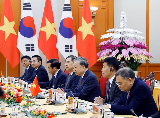 Tổng Bí thư Tô Lâm bày tỏ ấn tượng về những thành tựu mà Chính phủ và nhân dân Hàn Quốc đã đạt được khi tận mắt chứng kiến trong chuyến thăm cấp Nhà nước tới Hàn Quốc tháng 8/2025; cho rằng với những lợi ích chiến lược cơ bản tương đồng và thành quả hợp tác nhiều năm qua, Việt Nam và Hàn Quốc đang có những điều kiện rất thuận lợi để định hình tầm nhìn chiến lược mới cho hợp tác, kiến tạo cơ hội cùng phát triển.