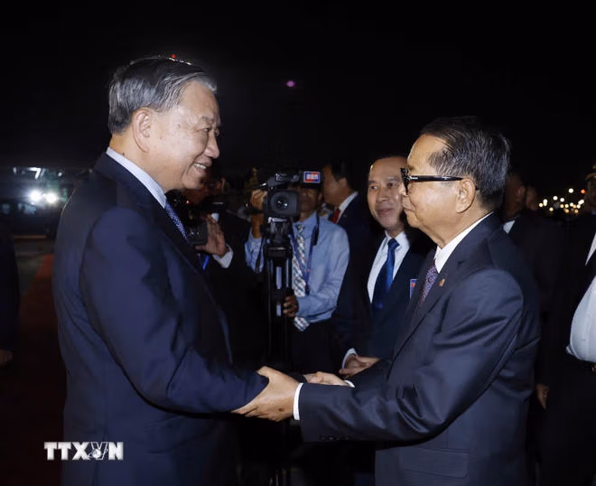 Tổng Bí thư Tô Lâm kết thúc tốt đẹp chuyến thăm cấp Nhà nước tới Campuchia Thứ Bảy 07/02/2026 08:02 (GMT+7) Tối 6/2, Tổng Bí thư Tô Lâm và đoàn đại biểu cấp cao Việt Nam rời Phnom Penh về nước, kết thúc tốt đẹp chuyến thăm cấp Nhà nước tới Vương quốc Campuchia. Lễ tiễn Tổng Bí thư Tô Lâm và đoàn cấp cao Việt Nam tại Sân bay Quốc tế Techo. (Ảnh: Thống Nhất/TTXVN).Lễ tiễn Tổng Bí thư Tô Lâm và đoàn cấp cao Việt Nam tại Sân bay Quốc tế Techo. (Ảnh: Thống Nhất/TTXVN).Tổng Bí thư Tô Lâm rời Phnom Penh về nước. (Ảnh: Thống Nhất/TTXVN).Tổng Bí thư Tô Lâm rời Phnom Penh về nước. (Ảnh: Thống Nhất/TTXVN). TheoVietnam+ (VietnamPlus)